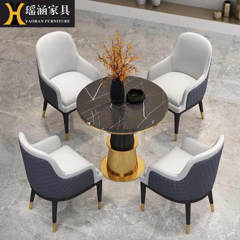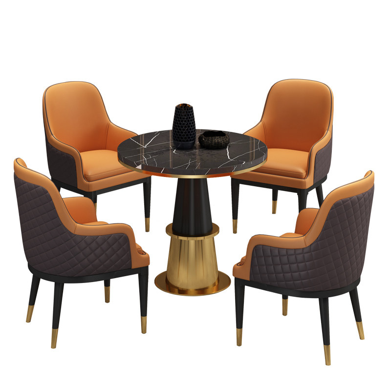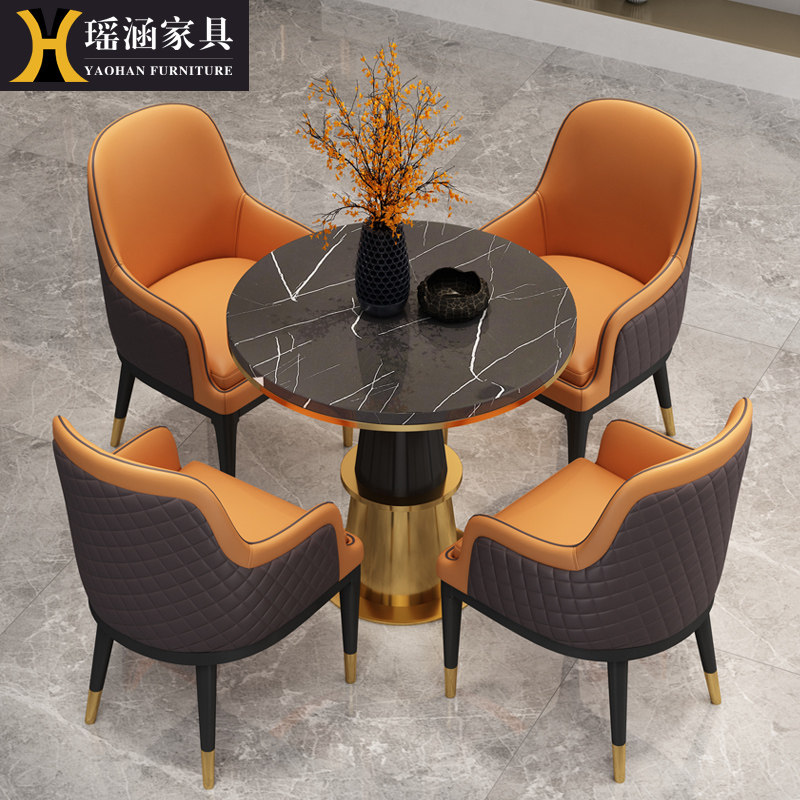 Light Extravagant Business Sample House Display Center Negotiate Table And Chairs Combine Reception Guests Casual Solid Wood Marble Balcony Small Round Table