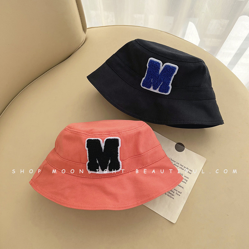 M letter labels children's fisherman's hat Han edition of the boy and girl baby spring and autumn cotton basin hat shading hat tide