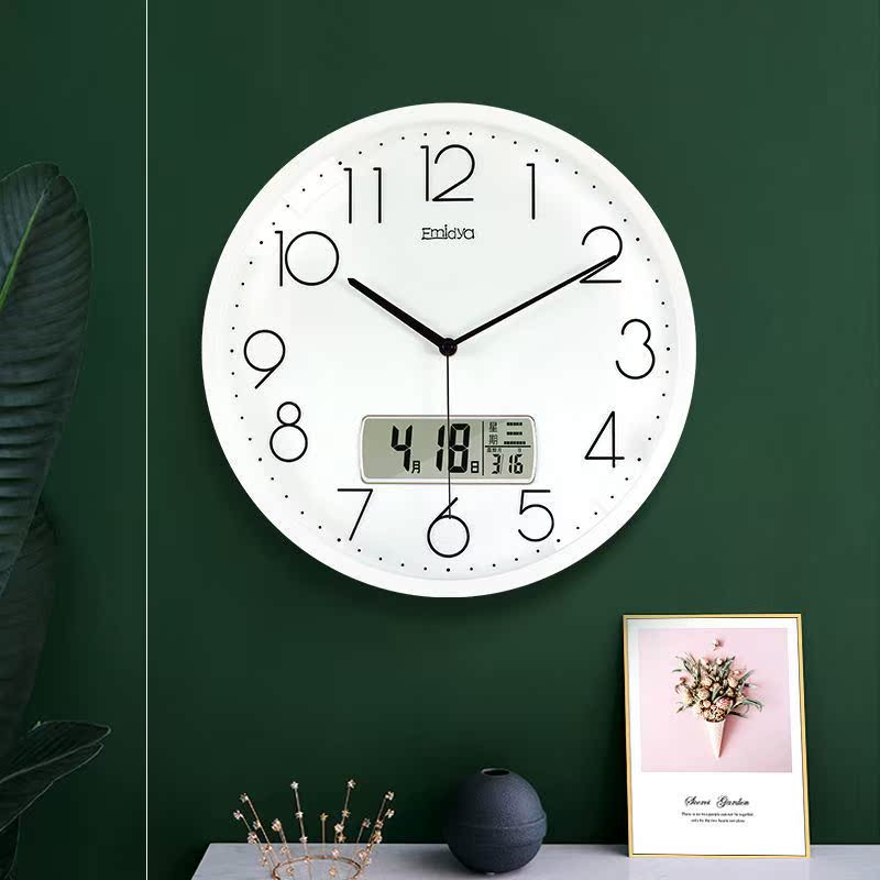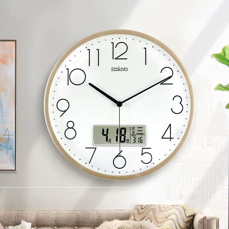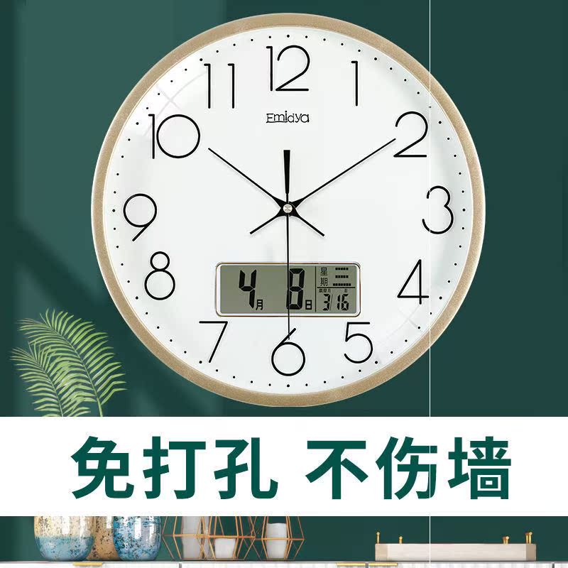 new living room hanging clock home fashion hanging watch modern minimalist hanging wall watches light lavish calendar free of punch with Nordic temperature