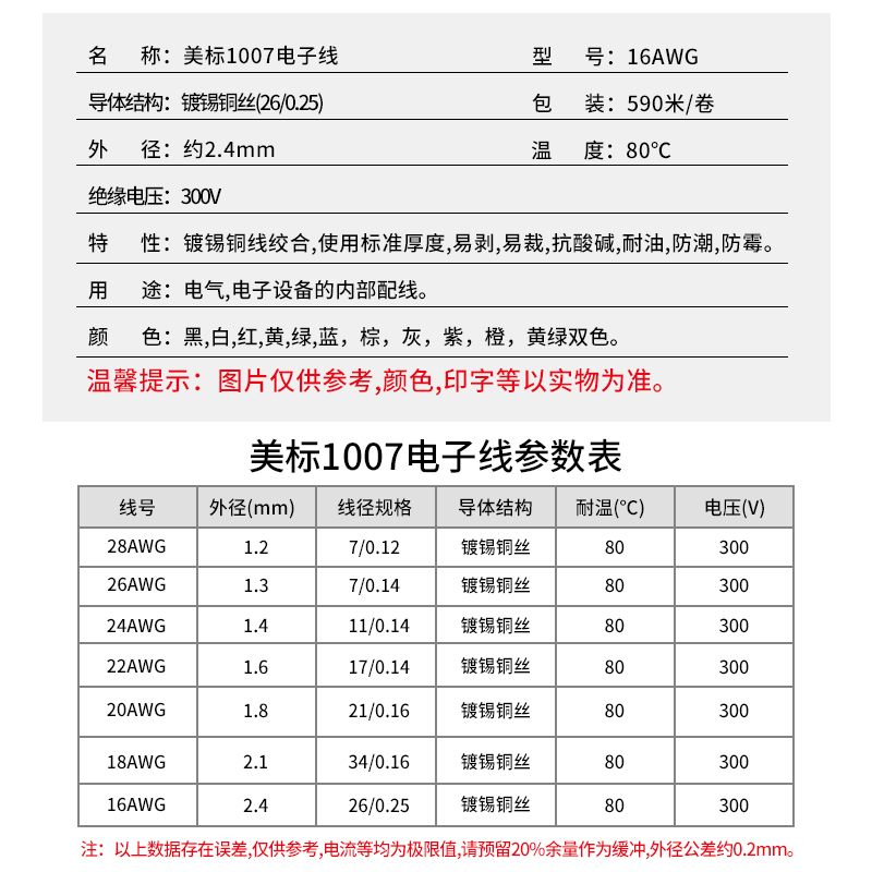 Beauty markings 1007 Electronic lines 26 24 22 20 20 18 16AWG Tinned led electronic wire Single Core multi-strand wire-Taobao