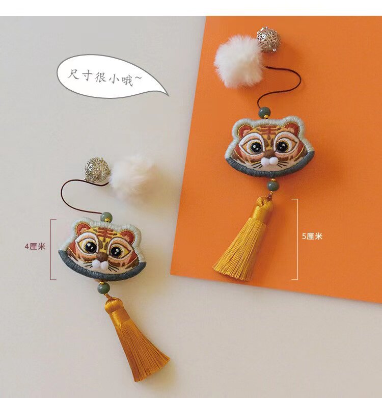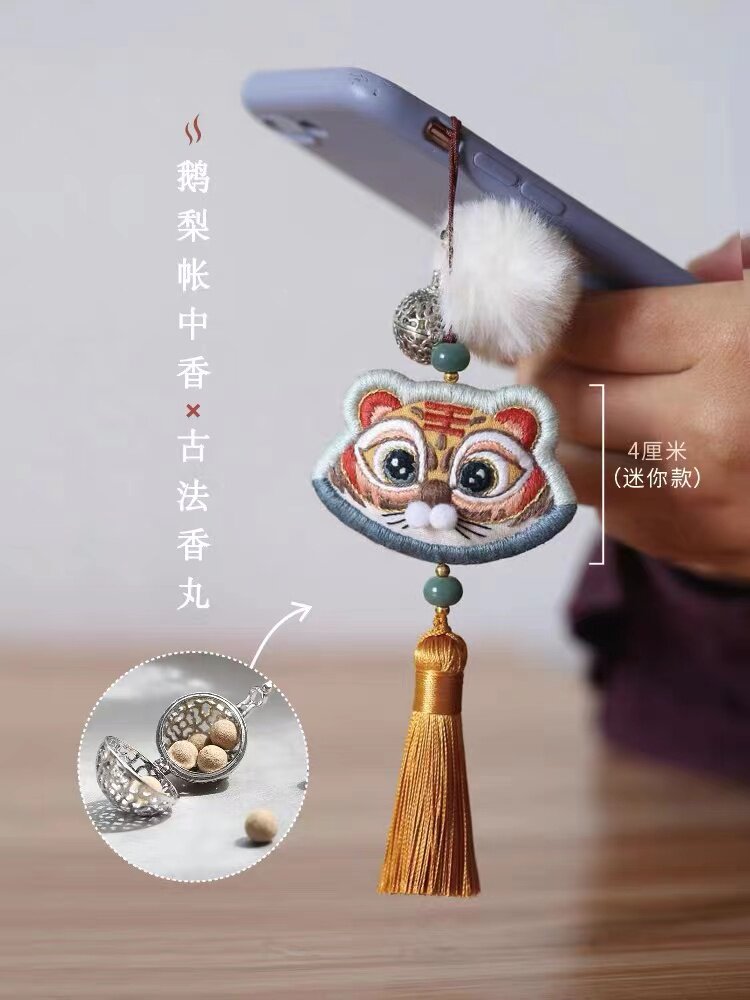 Zodiac tiger mini embroidery diy mobile phone hanging rope key hanging decoration finished fragrant sack send boyfriend holiday gift