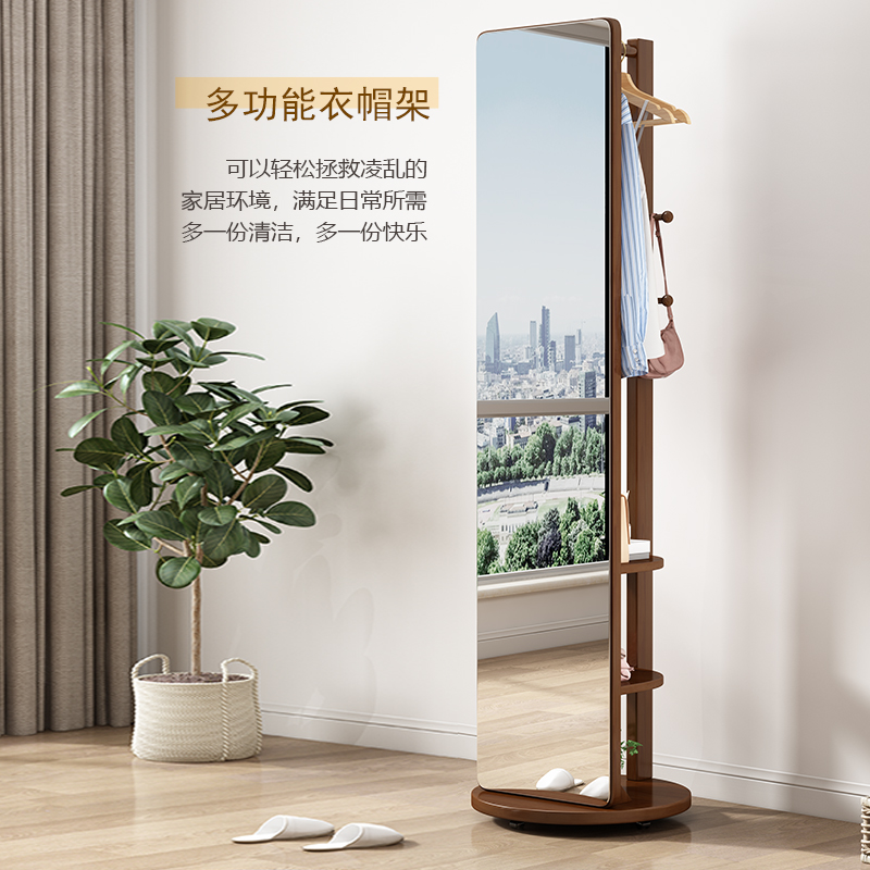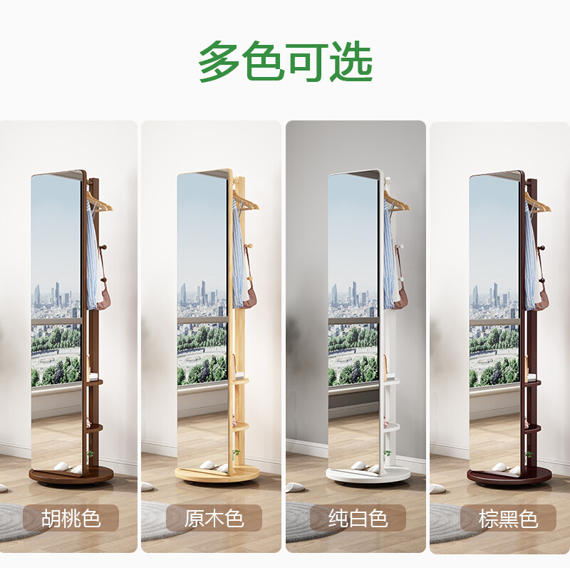 Solid wood hanger floor-to-ceiling mirror rotating coat rack home full-length mirror all-in-one full-length mirror bedroom vertical full-length mirror
