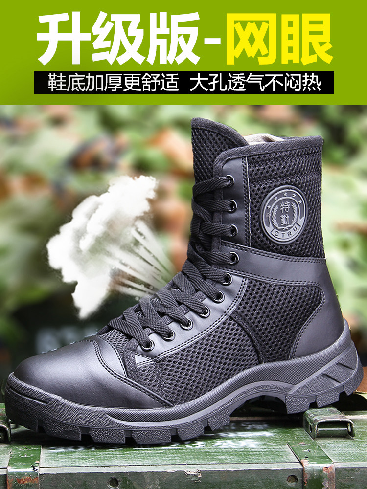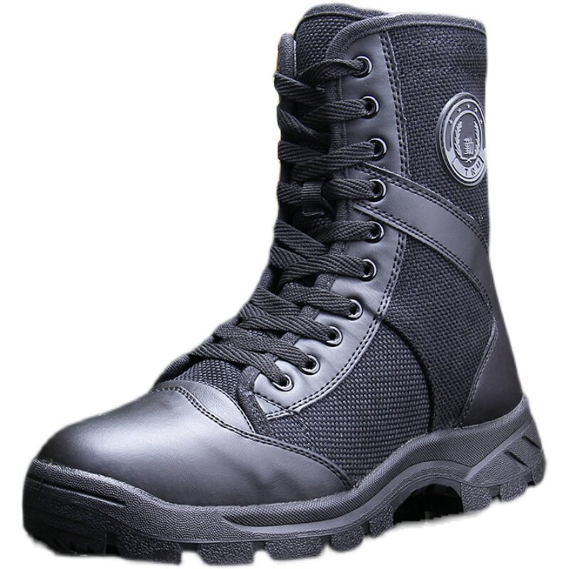 Security Shoes Man High Cylinder Outdoor Special Training Boots Summer Net Face Breathable Ultralight Combat Boots Black Canvas Combat Training Shoes