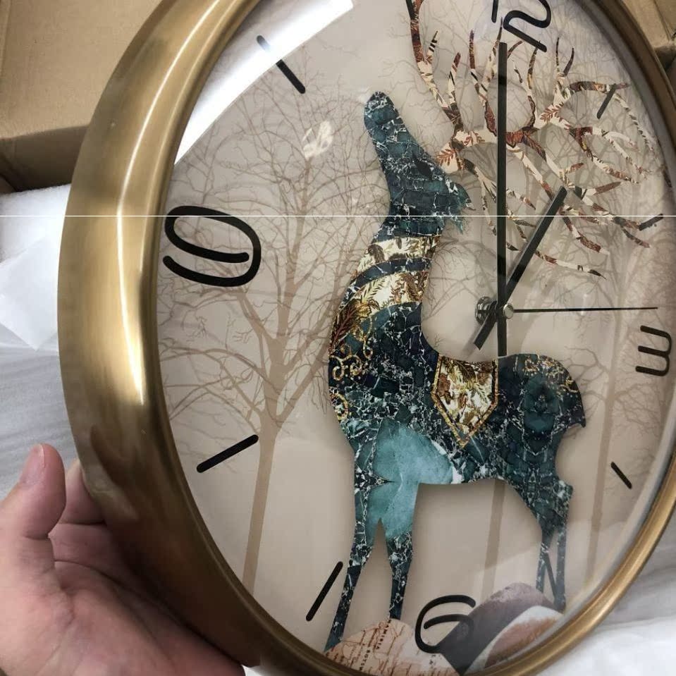 New Nordic Light Extravagant Minimalist Home Elk Deer New Chinese Metal Living Room Mute Clock Hung Clock Quartz Clock Hung