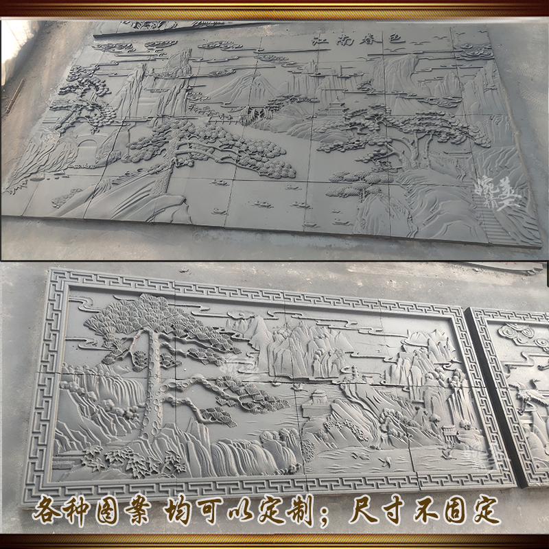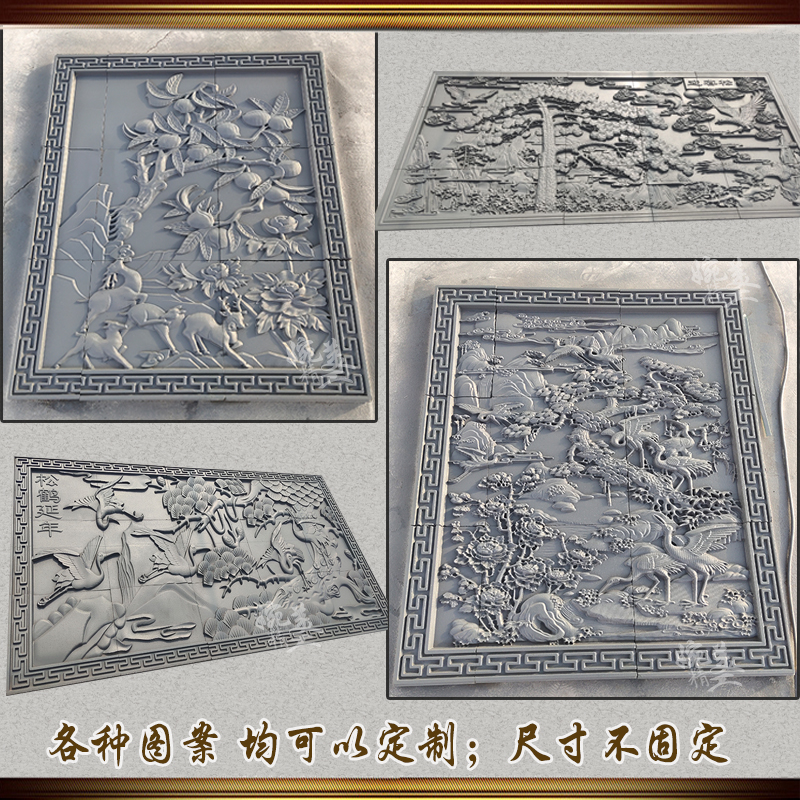 Antique brick sculpted wall landscape painting Embossed loft Carved Square View of the Embossed Four Courtyard Photos Wall Greet the Wall
