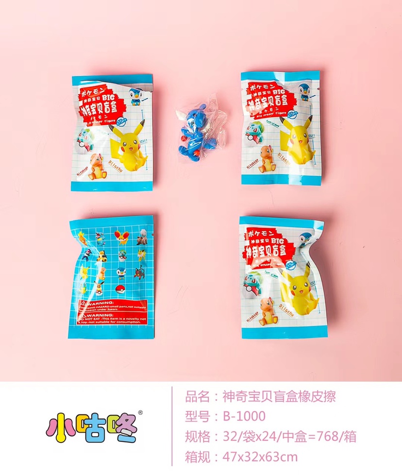 Pikachu blind bag eraser whole box 32 packets of wax pen small new blind bag eraser whole box 32 bag trio-euroblind bag eraser whole box 32 packets of ghost blind bag eraser whole box 32 packets of small jars rubber wipe the whole box