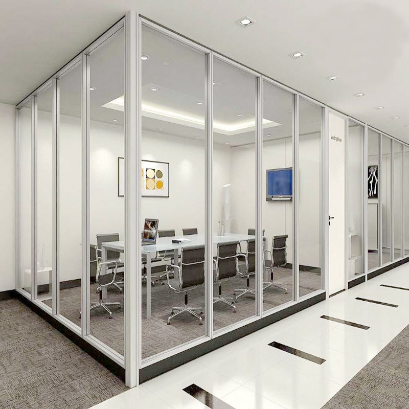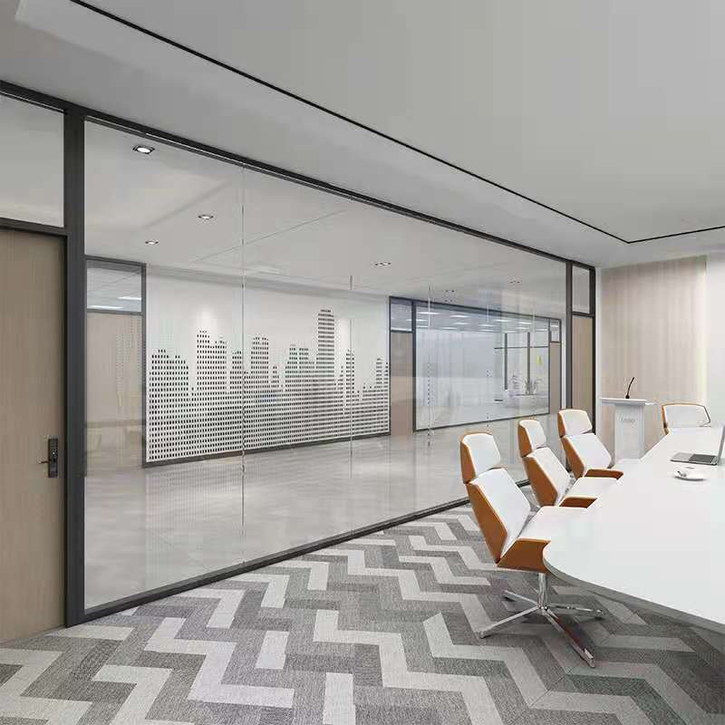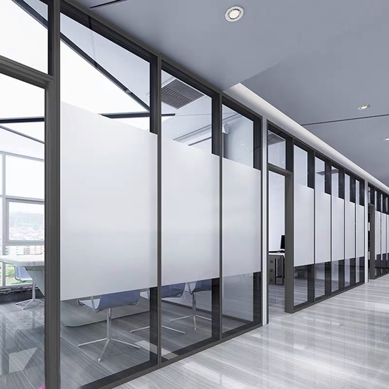 Office glass partition wall aluminium alloy double layer louvre hollow steel grinding frosted glass soundproof high compartment mobile door