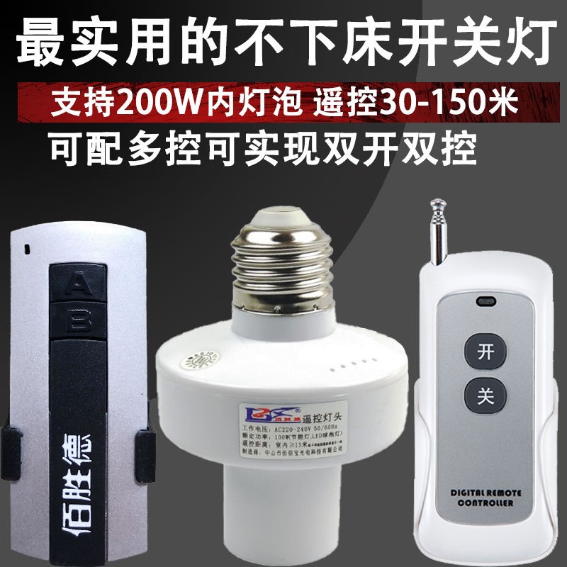 Remote control lamp head wireless remote control wall seat 220V switch support 200W remote control lamp wireless E27 screw