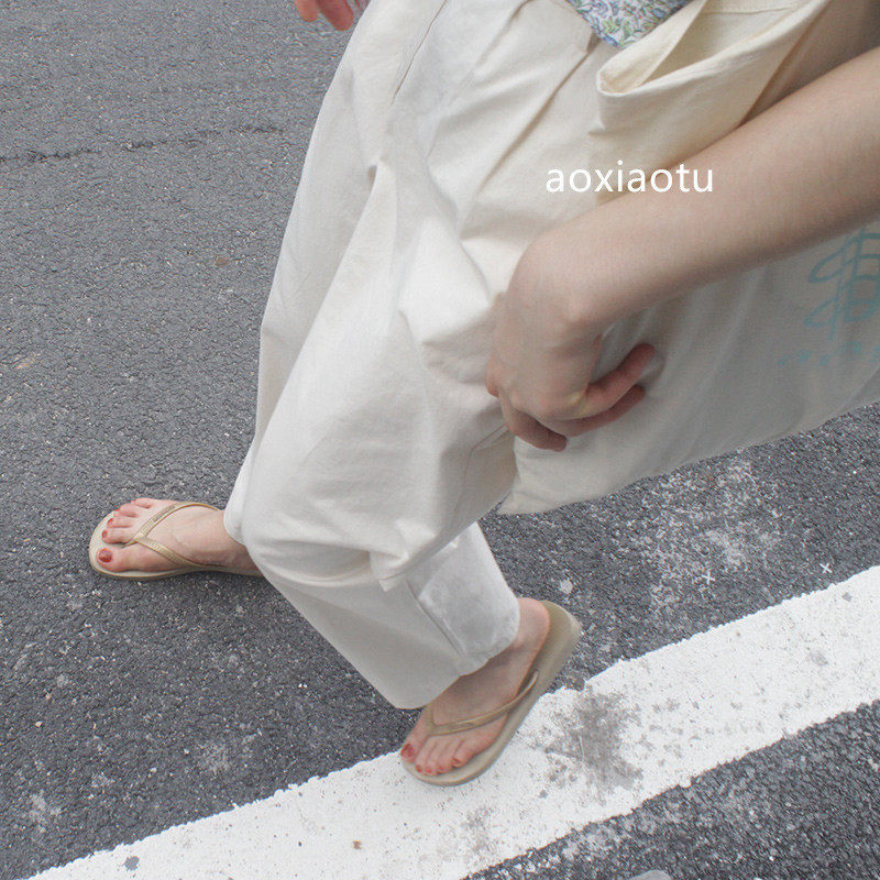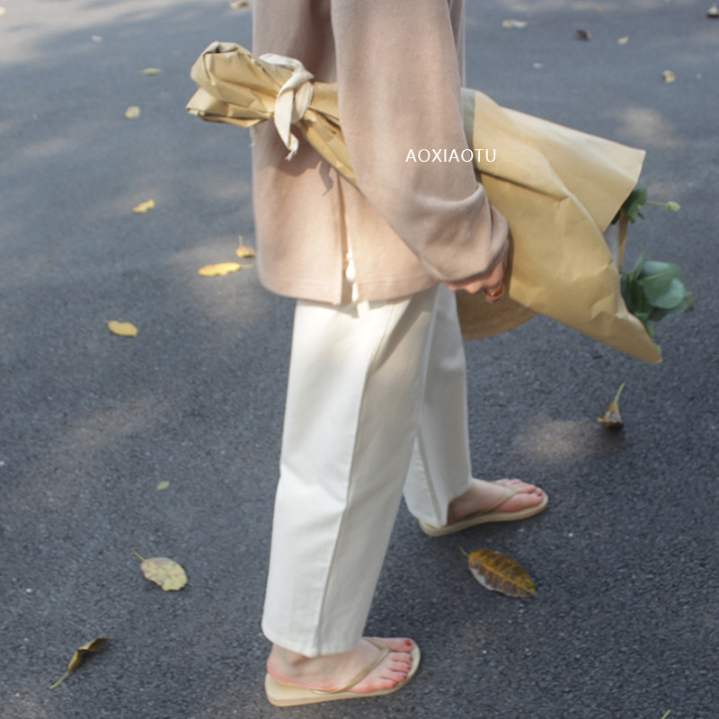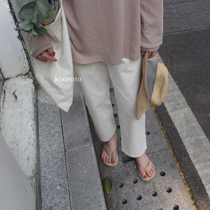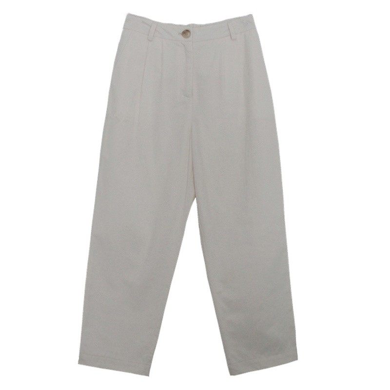 Homemade summer thin cotton linen rice white pants children loose straight drum high waist display slim light color casual pants 90% wide legs