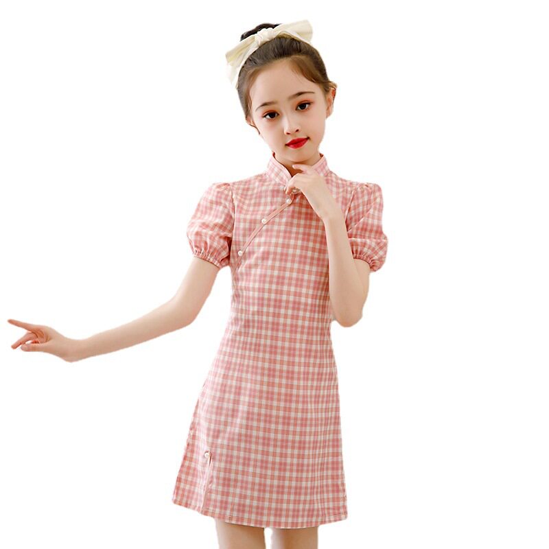 3-year-old Hanfu girl plaid cheongsam 2022 new style 4 children 5 Chinese style 6 stand collar 7 summer 8 children's dress