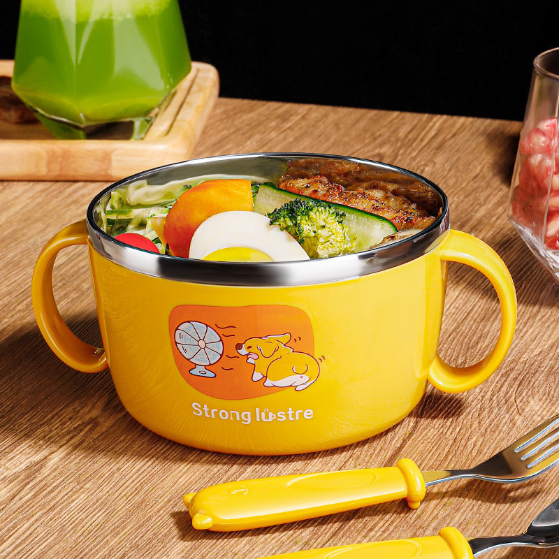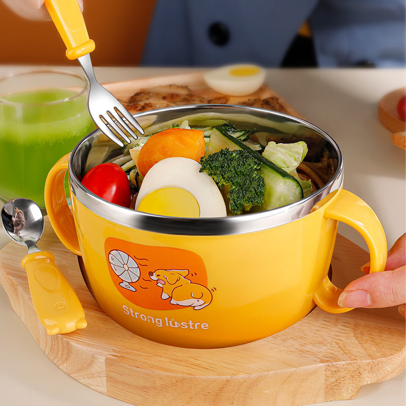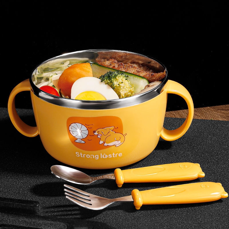 Children's bowl 4 1 6 year old anti-fall anti-scalding side food 304 stainless steel double ear handle food grade cute cartoon