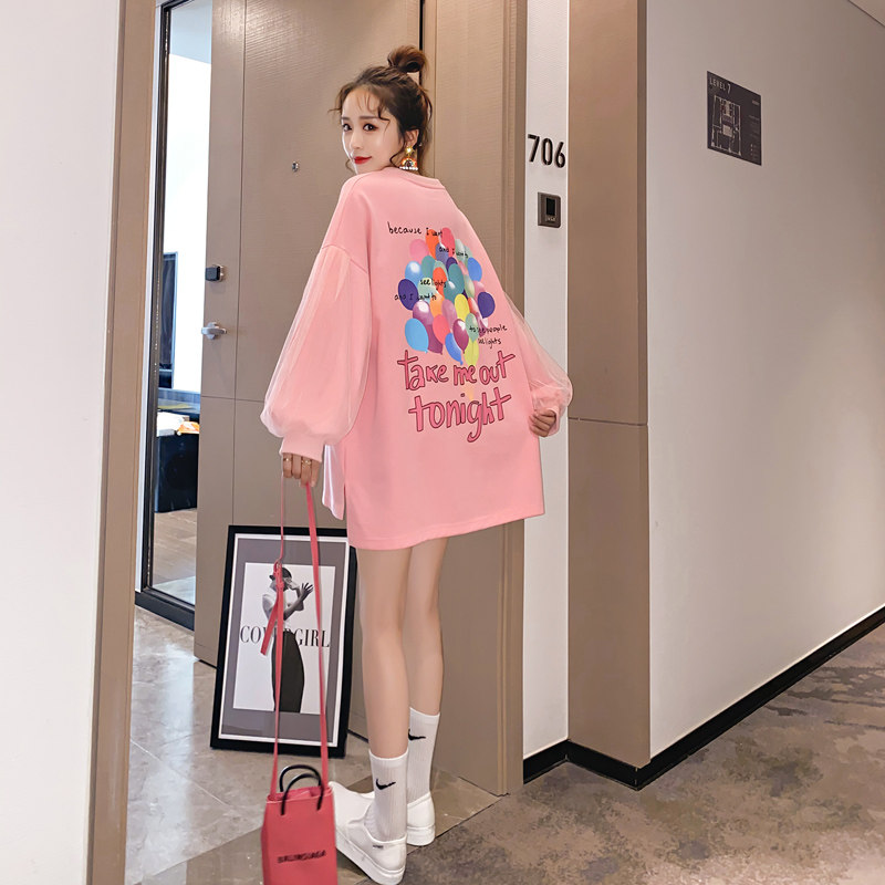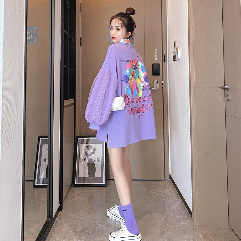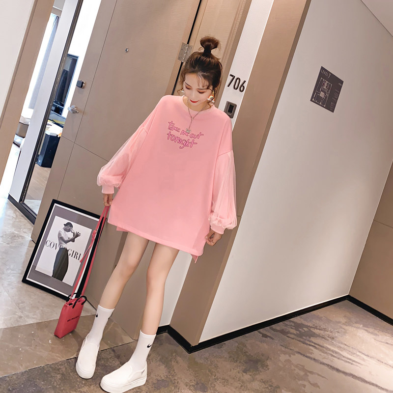 Plus hypertrophy size gestation maternity dress sweaty spring dress Fashion loose cover with long version mesh yarn Blister Sleeves Blouse 200 catty