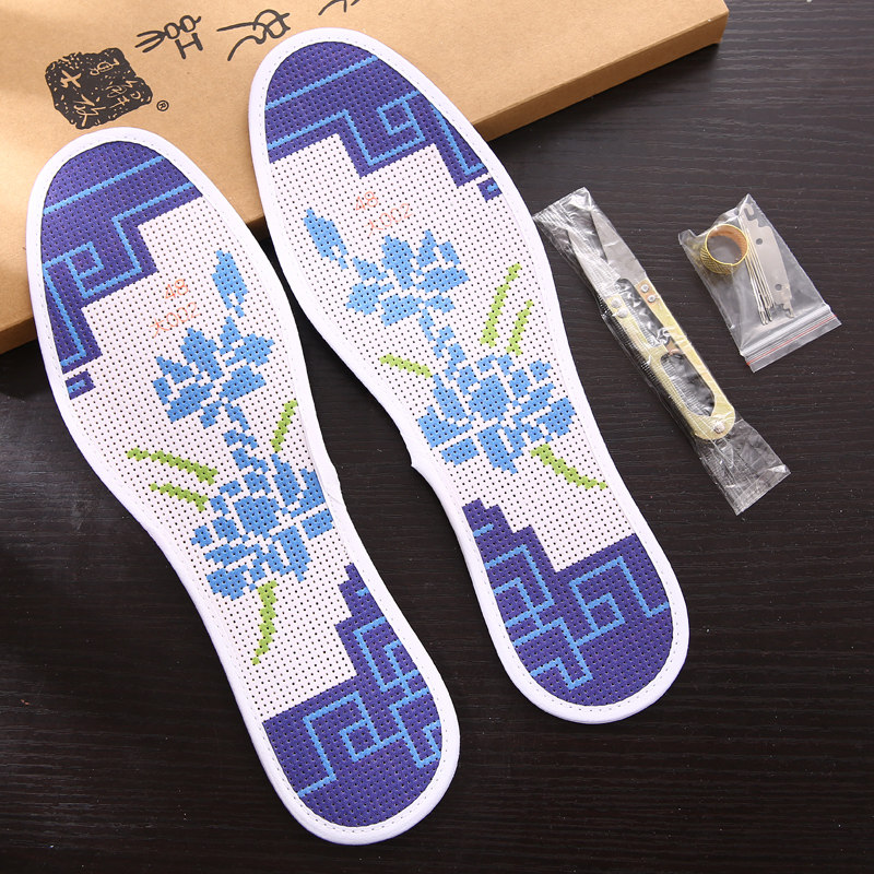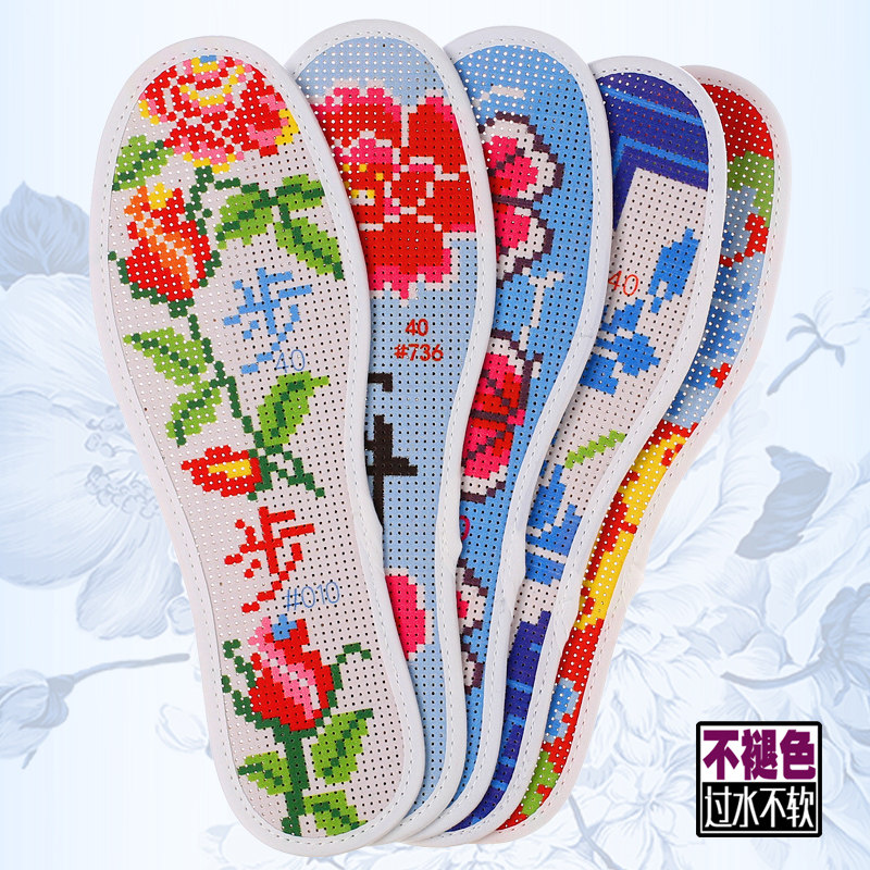 Cross embroidered insole seven-storey cotton fabric new male and female printed embroidery pinhole full embroidered semi-finished wedding dowry