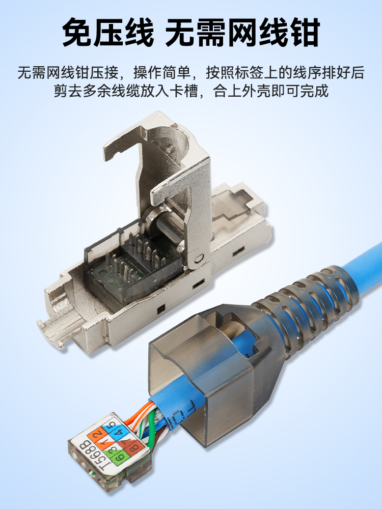 Industrial anti-shock RJ45 Eight-core Profinet crystal head EtherCat mesh route free press connector ultra-six