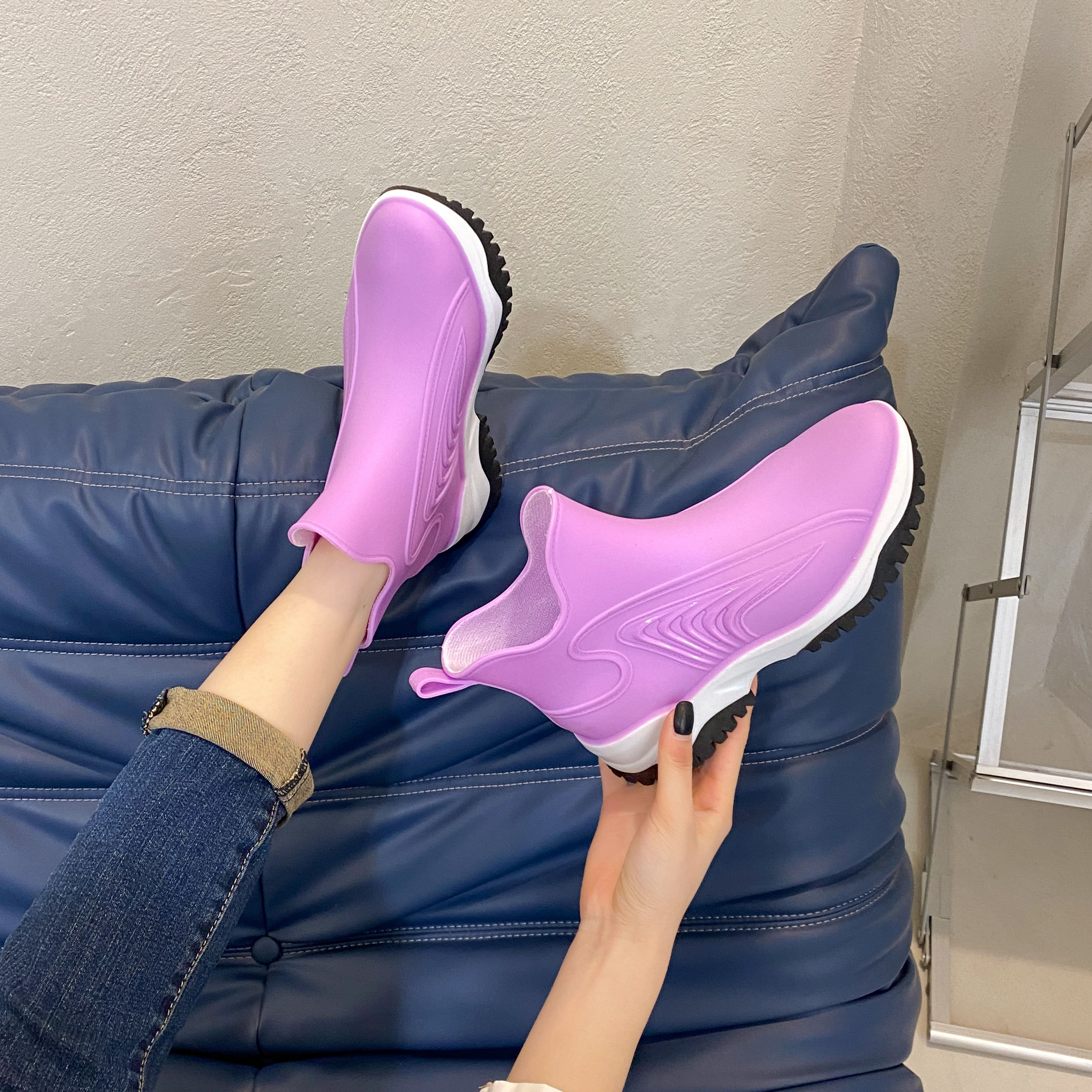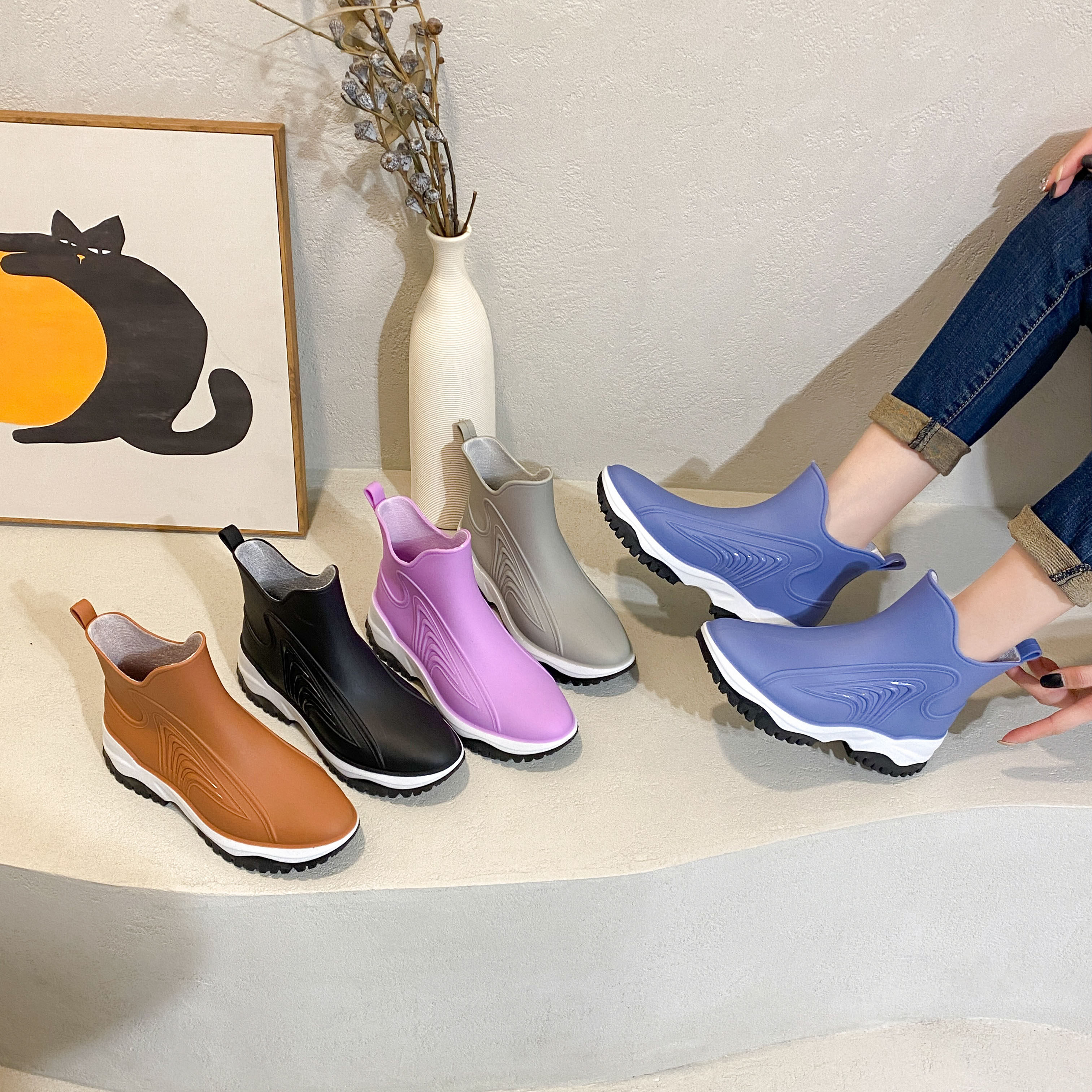 2022 star with the same rain boots women's non-slip wear-resistant European and American fashion rubber shoes women's rain boots kitchen mid-tube water shoes women