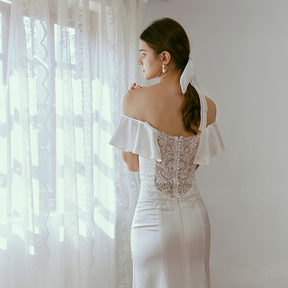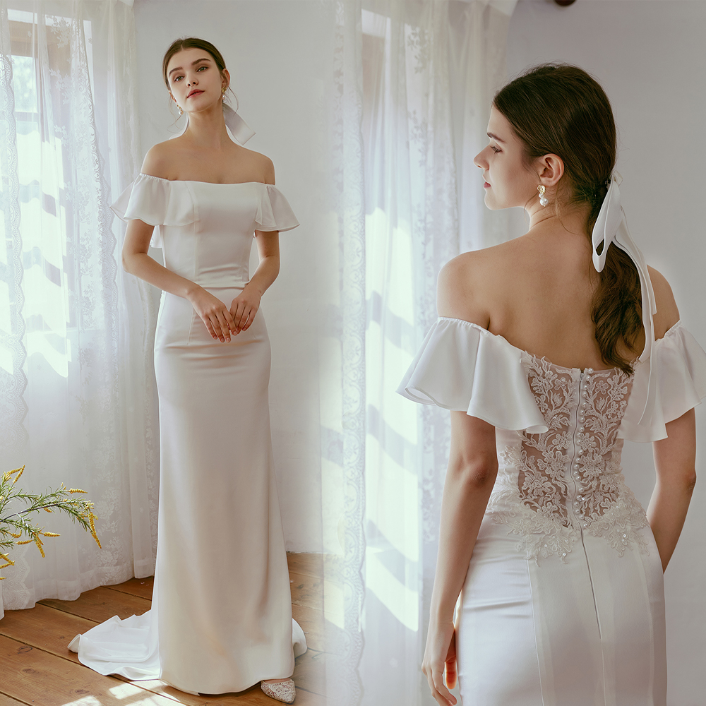 Founder Fanna 2022 designer custom made of white retro satin nail beads lace fishtail light wedding dress