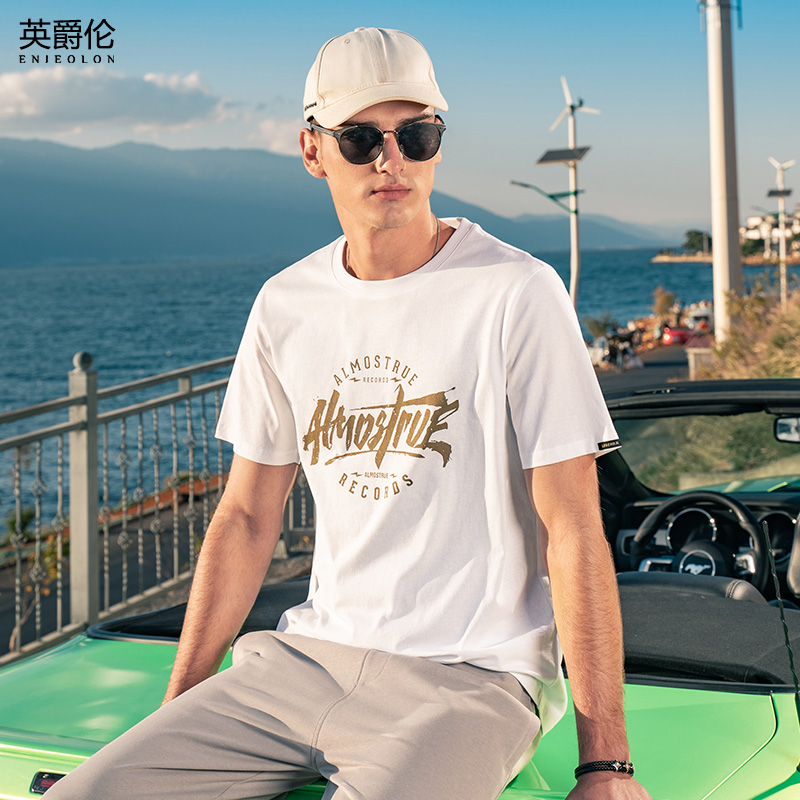 British knightsman 2022 new heavy pound pure cotton boomer short sleeve t-shirt male summer American printed half sleeve European and American T-shirt
