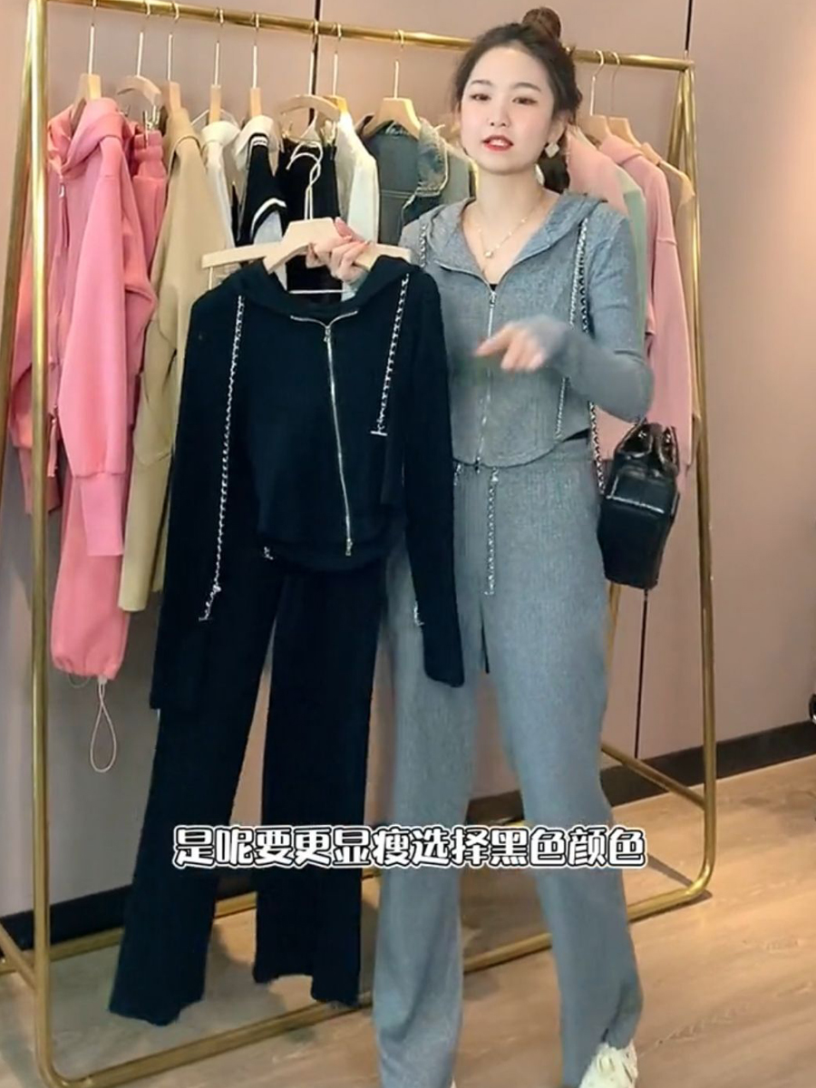 Casual Sports Suit Women's Spring Autumn Season 2022 New Fashion Temperament Slim Fit Slim High Waist Wide Pants Two Sets