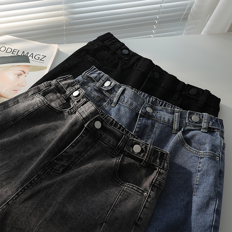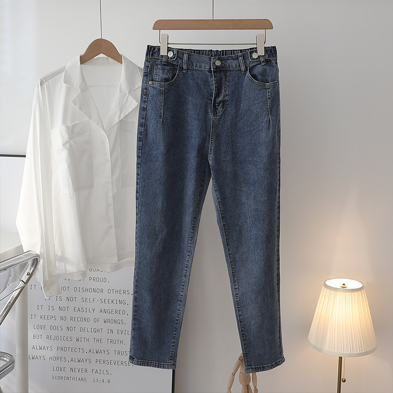 Spring large size jeans women's fat sister 200 catties high waist loose and thin straight pants