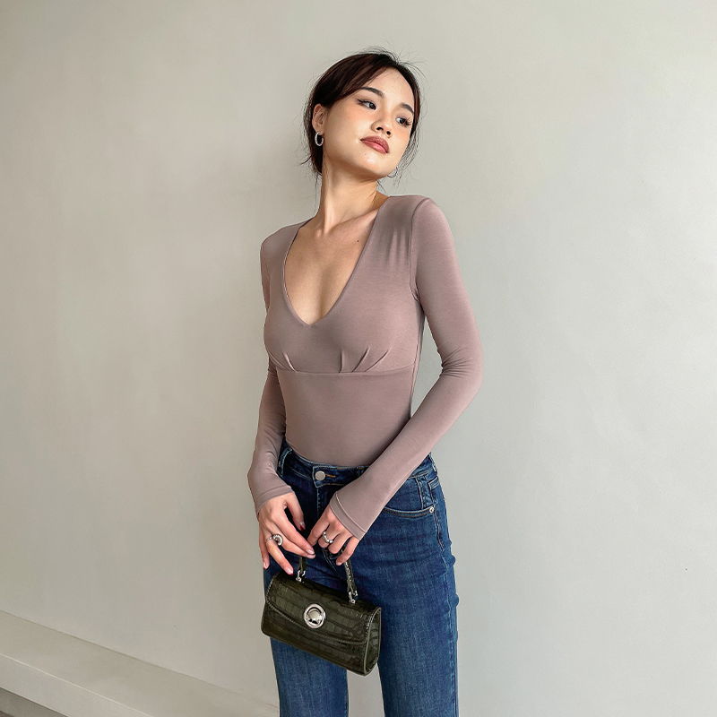 LEIYU Model Long Sleeve T Shirt 2022 Spring 2022 New Deep V - collar tightly tightened in Europe and America in hot tie to bother the coat