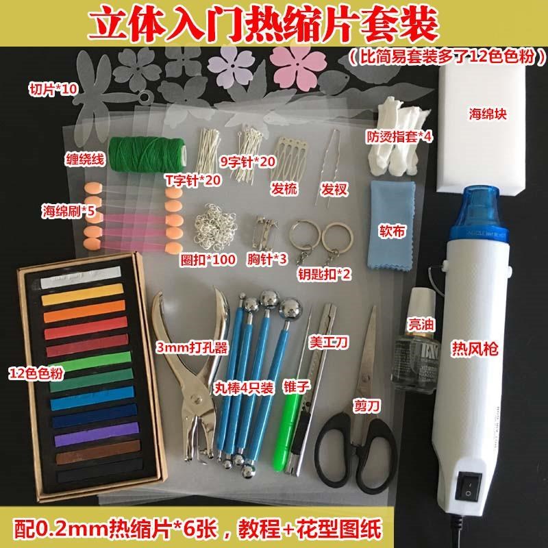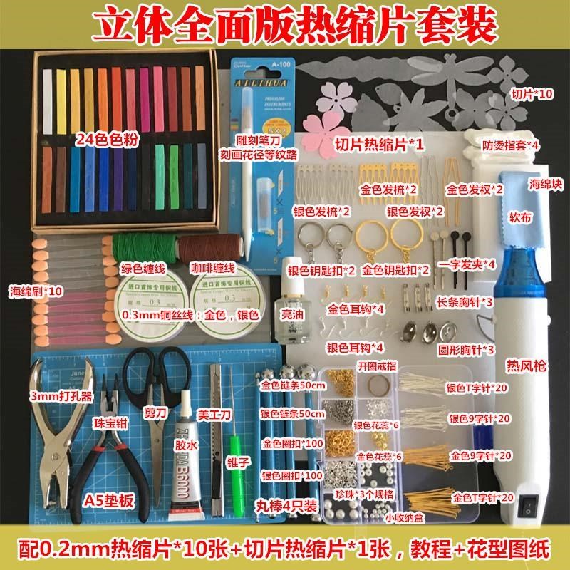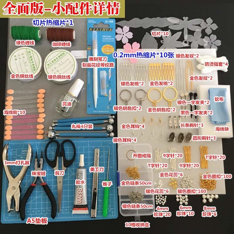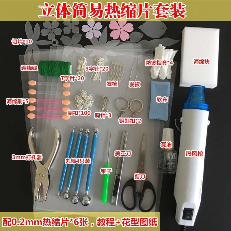 Heat shrink film DIY set three-dimensional heat shrink film novice set three-dimensional flower hairpin antique jewelry handmade DIY material