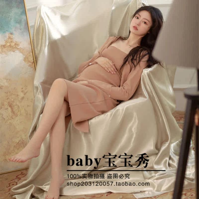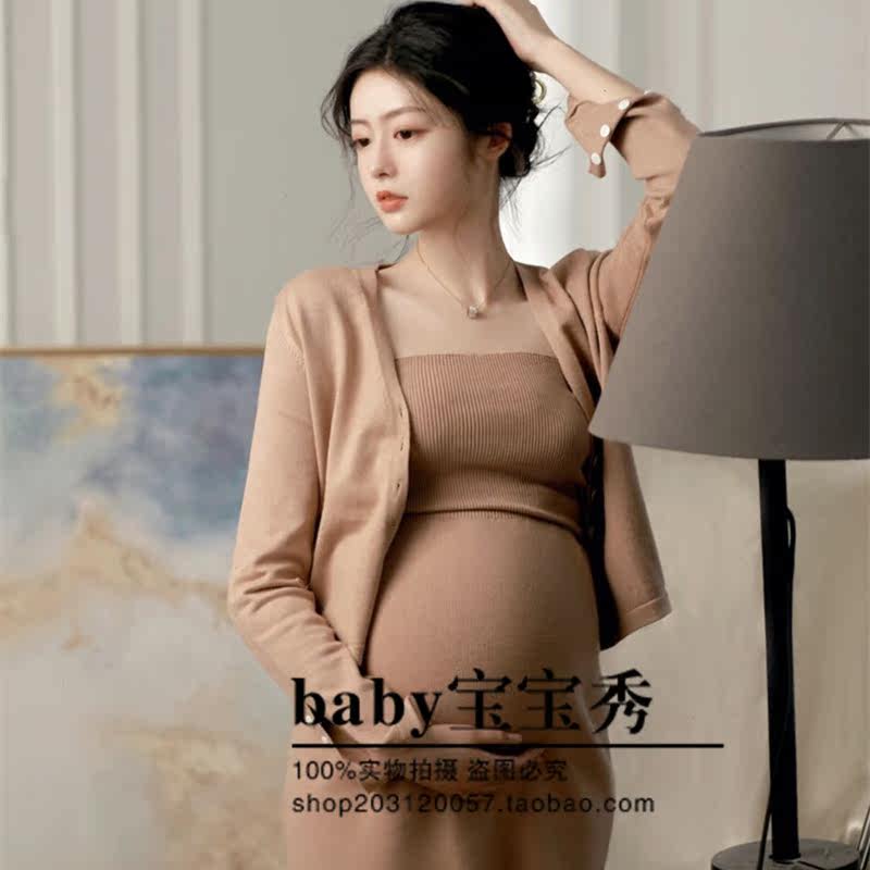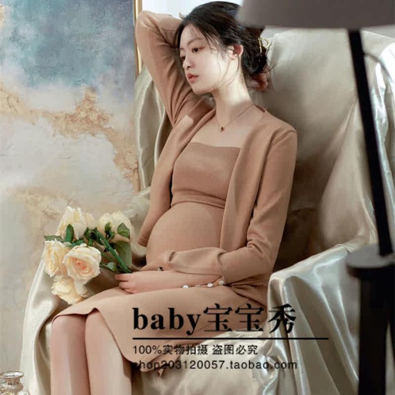 2022 Pregnant Woman Photo Clothing Photo Gallery Autumn Winter Shooting Movie writing True Body Slim Mommy Gestured Knitted one-piece dress