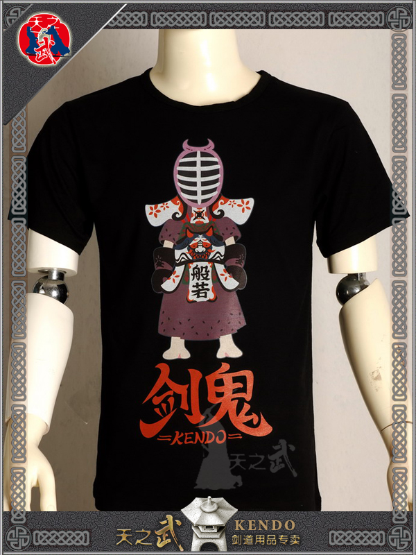 The warrior of the sky-like the wind and the whole cotton short sleeve double face printed black and white T-shirt exclusive limited Japanese sword track