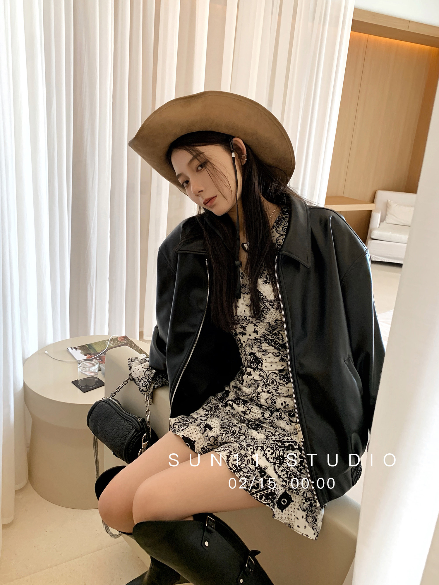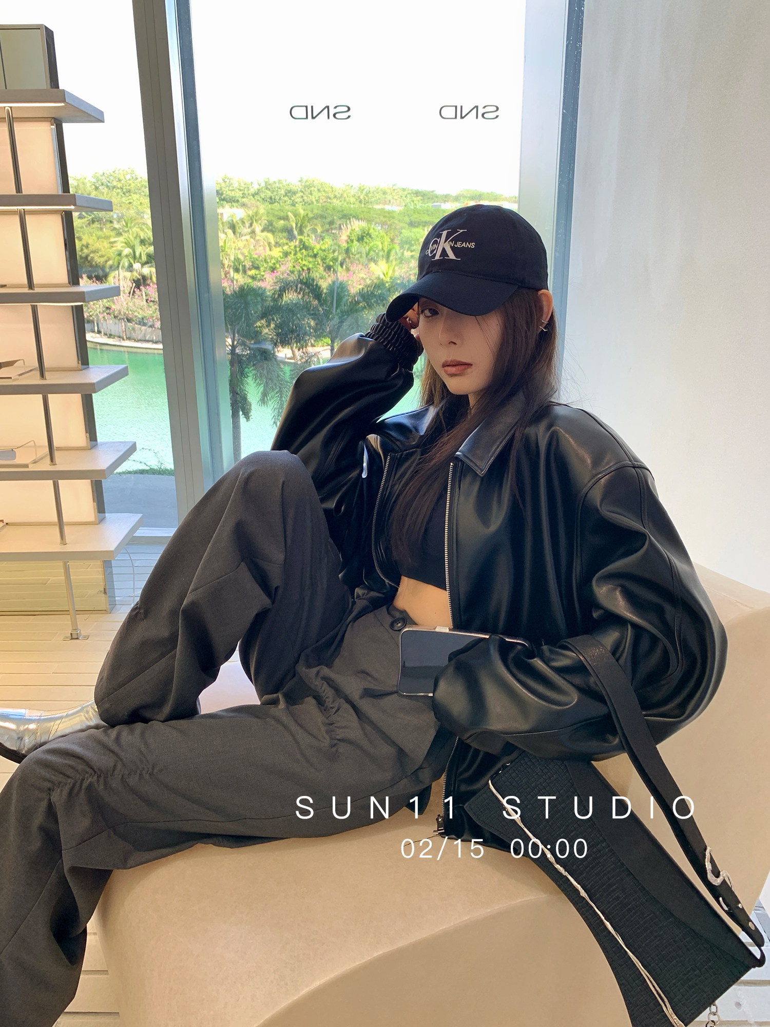 SUN11 black motorcycle small leather jacket women's 2022 spring and autumn new small pu leather casual loose jacket