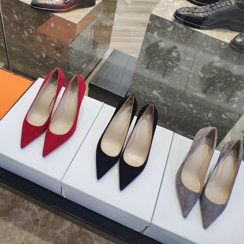 Slim Sheepskin Suede High Heels Women's Stiletto Heel Pointed Toe 2022 New Red and Black Pumps 7 8 10cm