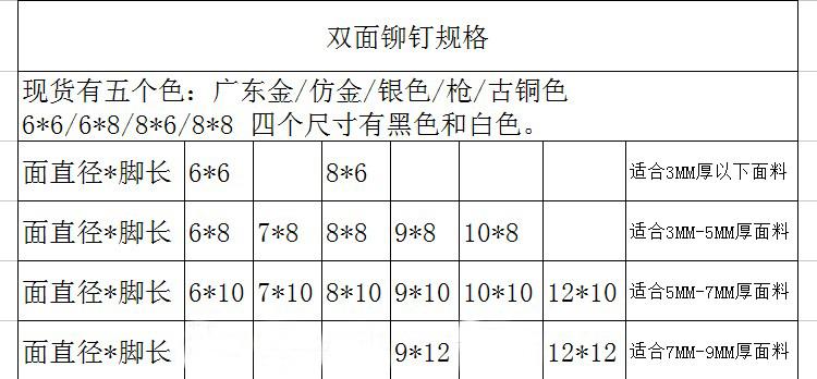 6 * 10 bifacial flat bump silver 100 sleeves 8 * 6 bifacial flat bump silver 100 sleeves 6 * 6 Double face flat bump nail silver 100 12 12 * 10 Double face flat bump nail silver 10