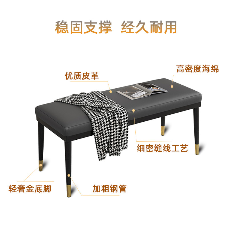 Change shoe stool small apartment living room light luxury shopping mall leather houndstooth long sofa clothing store fitting room simple bench