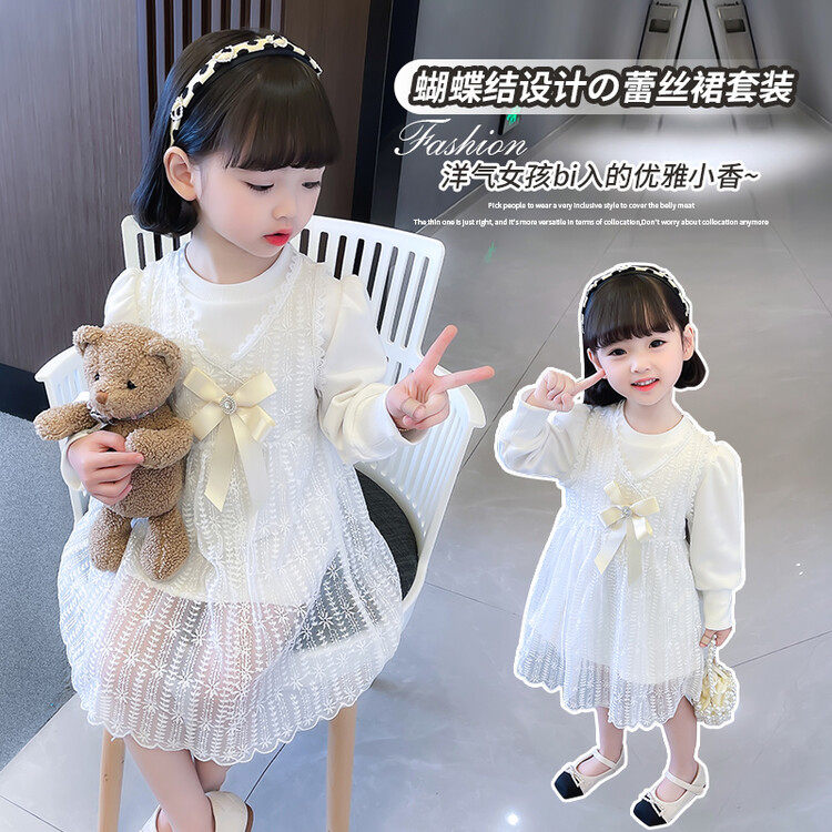 Girl Foreign Dress 2022 New Medium & Small Children's Spring Autumn Dress Princess Dresses Children's Korean Version Suit Skirt