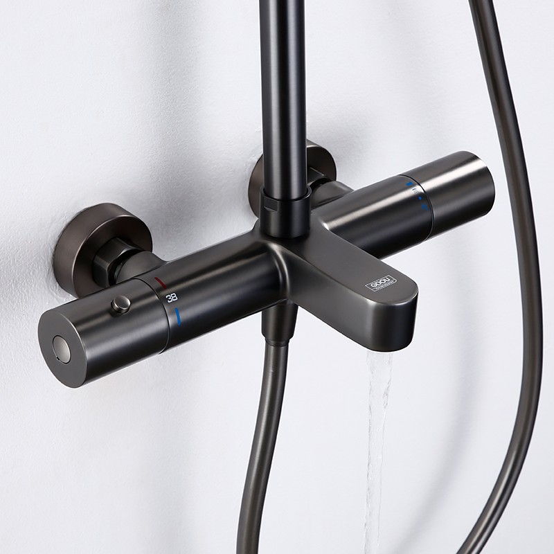 German GDOU Guduo bathroom 83014Q gun gray full copper body constant temperature shower faucet shower set top spray