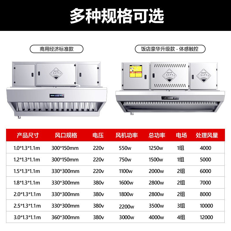 Fume purification All commercial kitchen restaurant catering large suction fume hood stainless steel purification fume deodorization