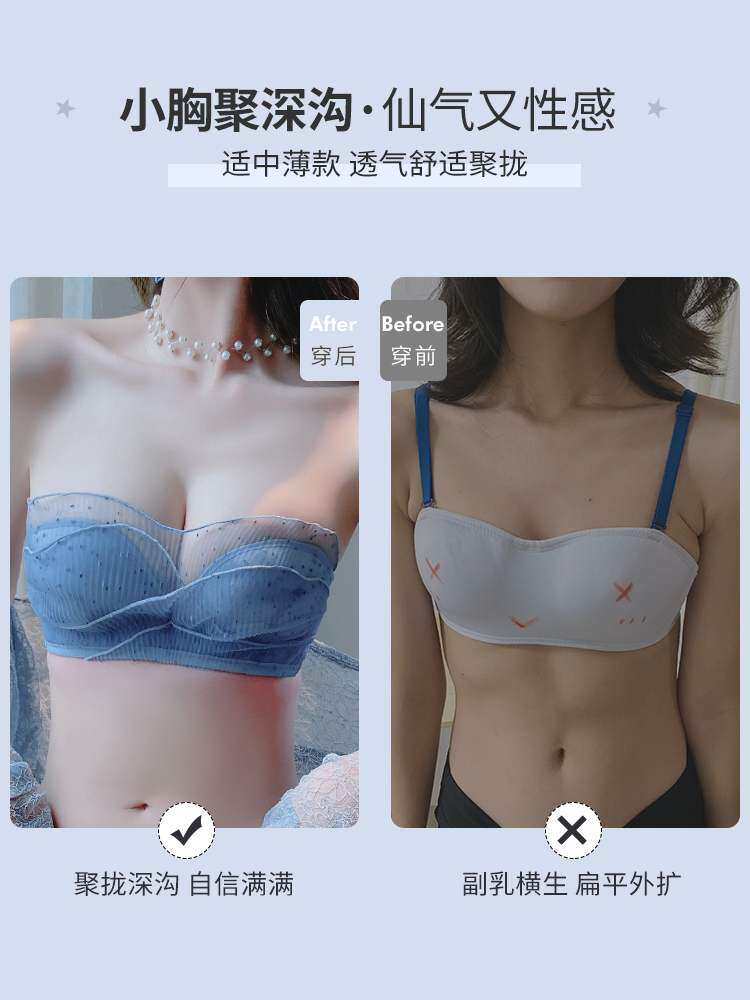Strapless Underwear Suit Ladies Summer Small Breasts Gathering Receiving Breast Adjustment Bra Sexy Lace Underwear Panties