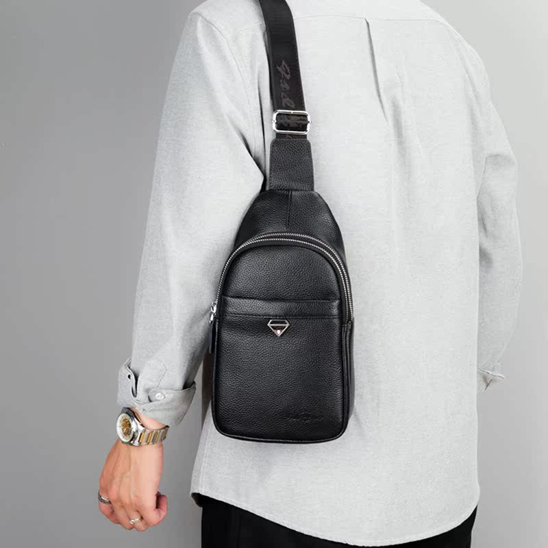 Hong Kong's new trendy chest bag leather waterproof messenger bag large-capacity multi-functional first layer cowhide single-shoulder men's bag