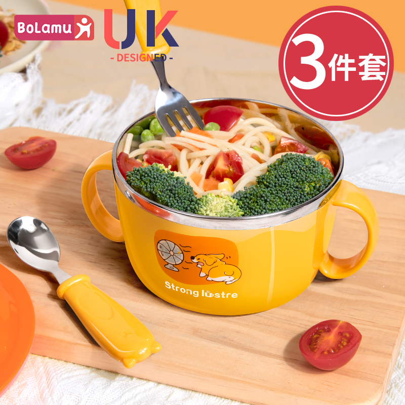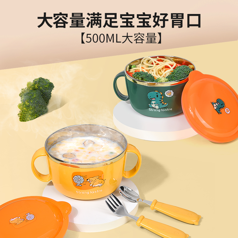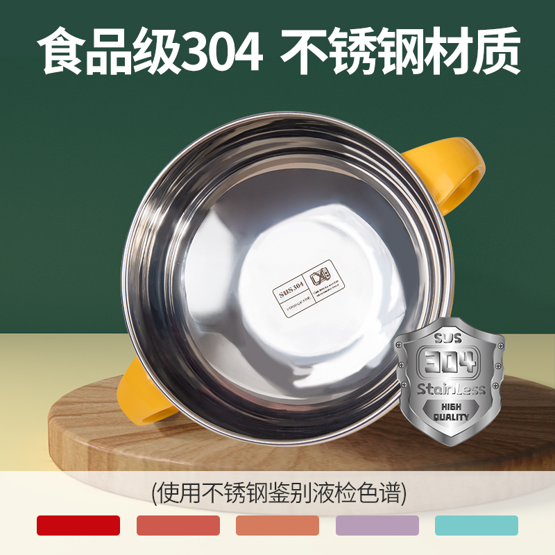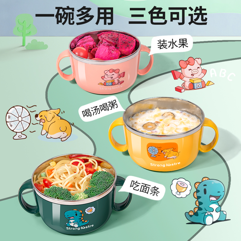 Children's bowl anti-fall anti-scalding stainless steel with handle bowl spoon primary school students eat baby non-staple food soup bowl spoon tableware