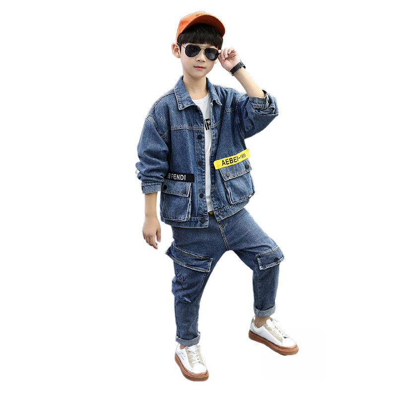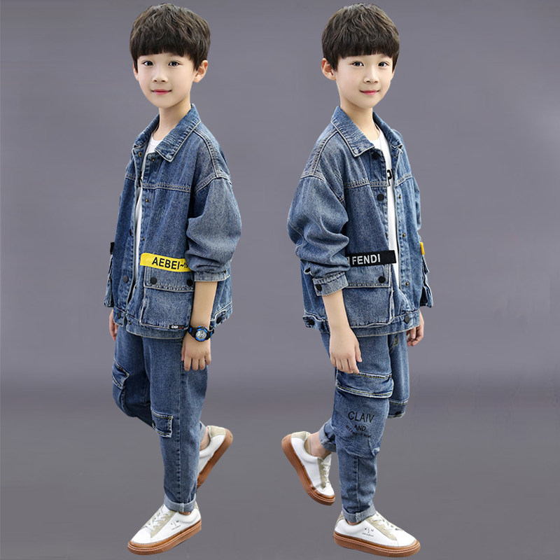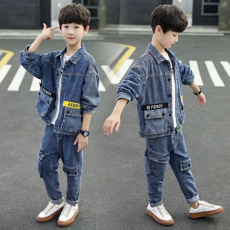Boys denim suit spring and autumn 2022 new children's spring two-piece suit foreign handsome boy ruffian handsome children's clothing