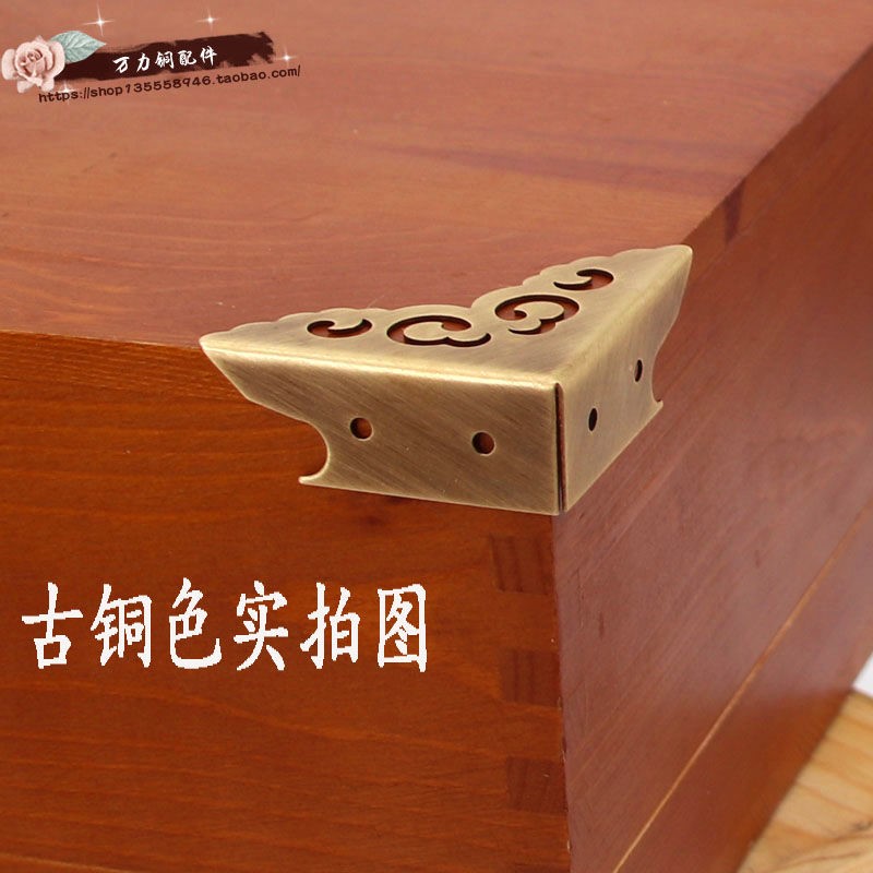 All copper corner protection camphor wood luggage corner Chinese antique corner flower patch cabinet door table edge jewelry box three-sided corner protection