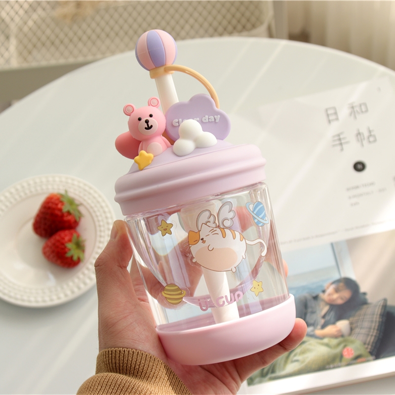 Small Bear Cold Extraction Straw Cup (Tea Flowers Red) 470ml Small Bear Cold Extraction Straw Cup (Almond Yellow) 470ml Small Bear Cold Extraction Straw Cup (Mountain Stalk Purple) 470ml Small Bear Cold Extraction Straw Cup (fruit
