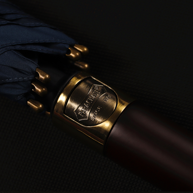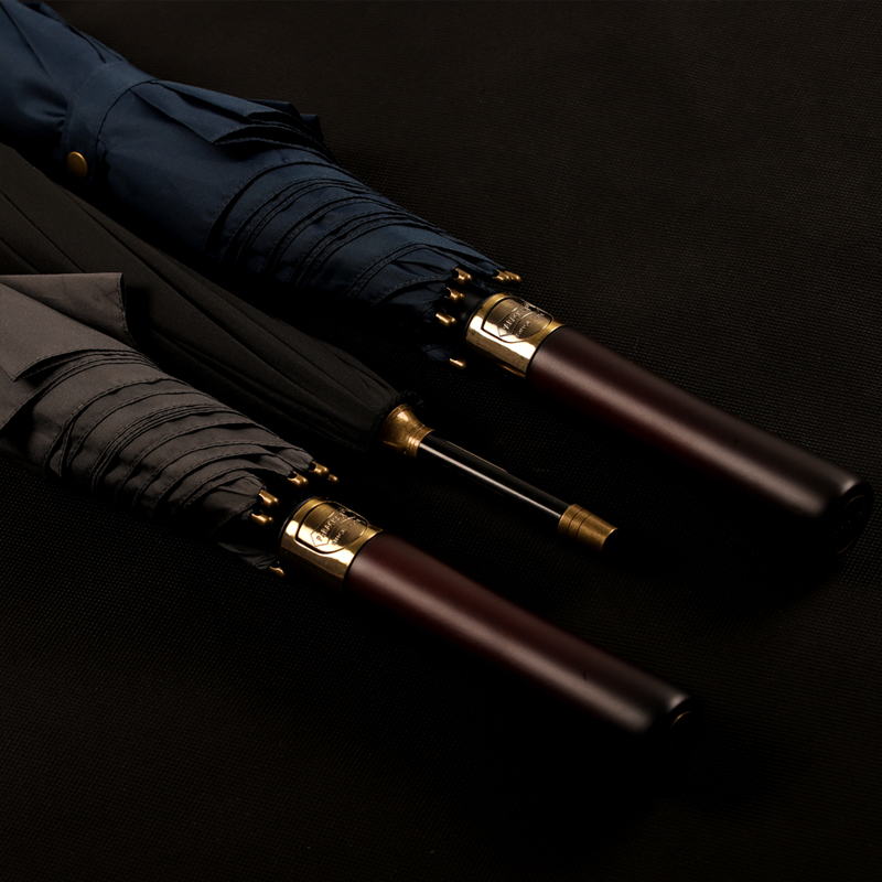German military-industrial solid wood straight umbrella men anti-rainstorm double super high-end retro automatic long handle umbrella 132CM