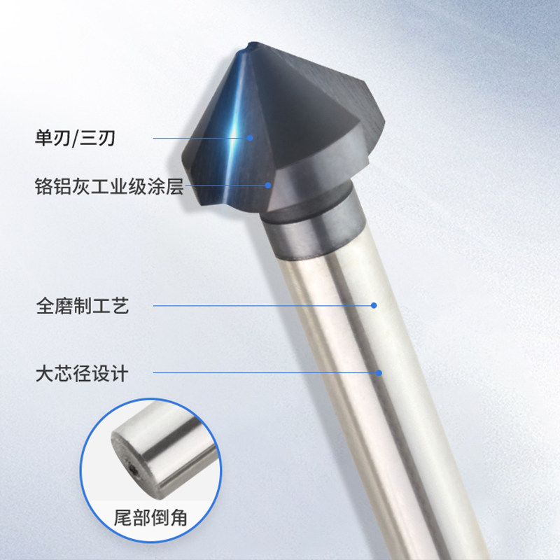 Three-edged single-edged stainless steel cobalt-containing chamfering knife drill bit 90 degree chamfering device titanium-plated coating milling cutter deburring cone