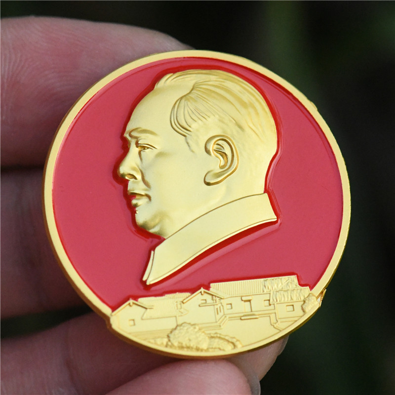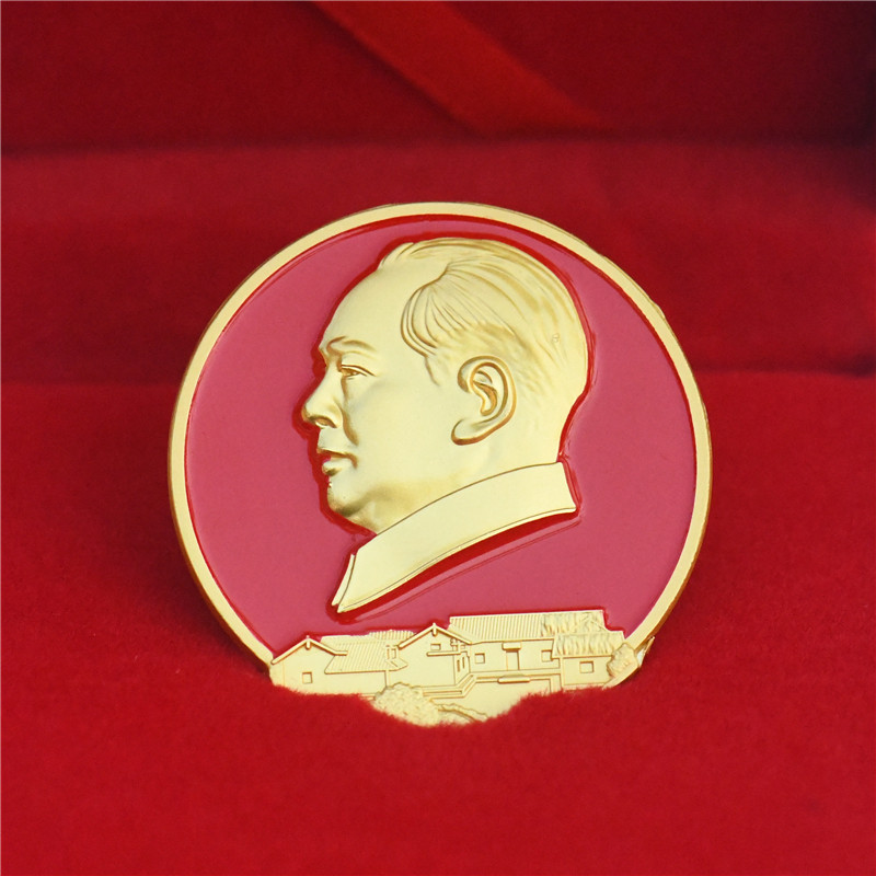 Mao lord like badge former residence portrait paint badge badge Grandpa Mao brooch former residence model 3 5CM red cover box