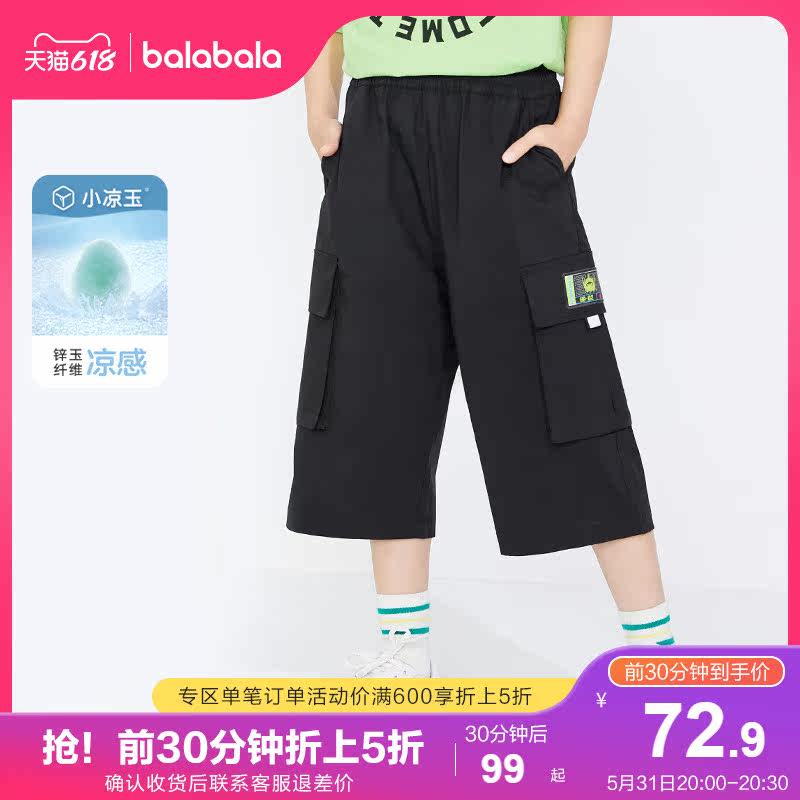 Balabala boy pants children summer clothes 2022 new men's great boy casual elastic 70% workwear pants tide
