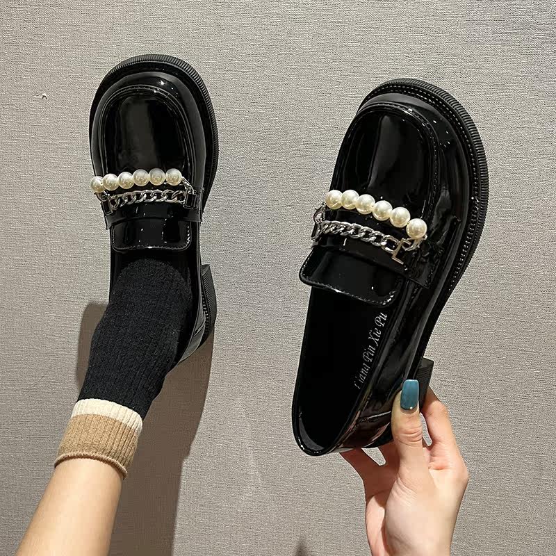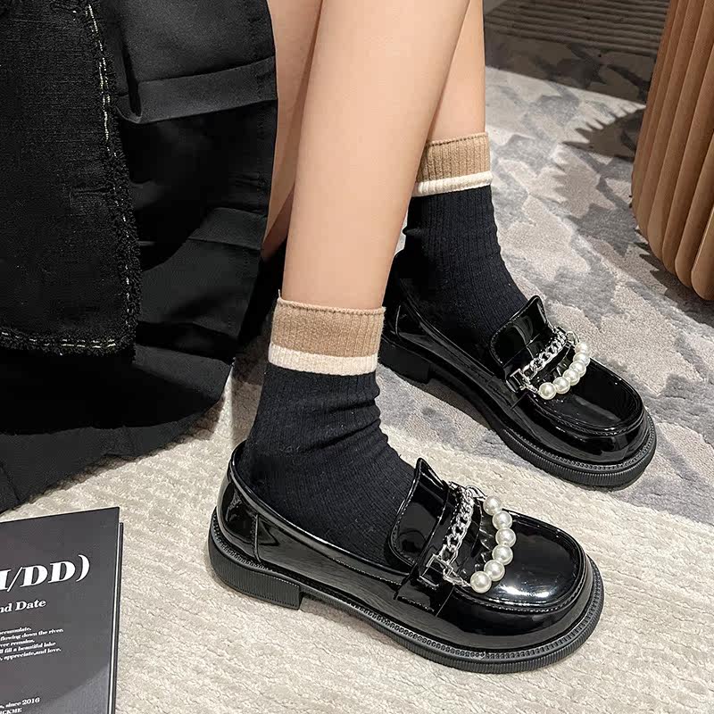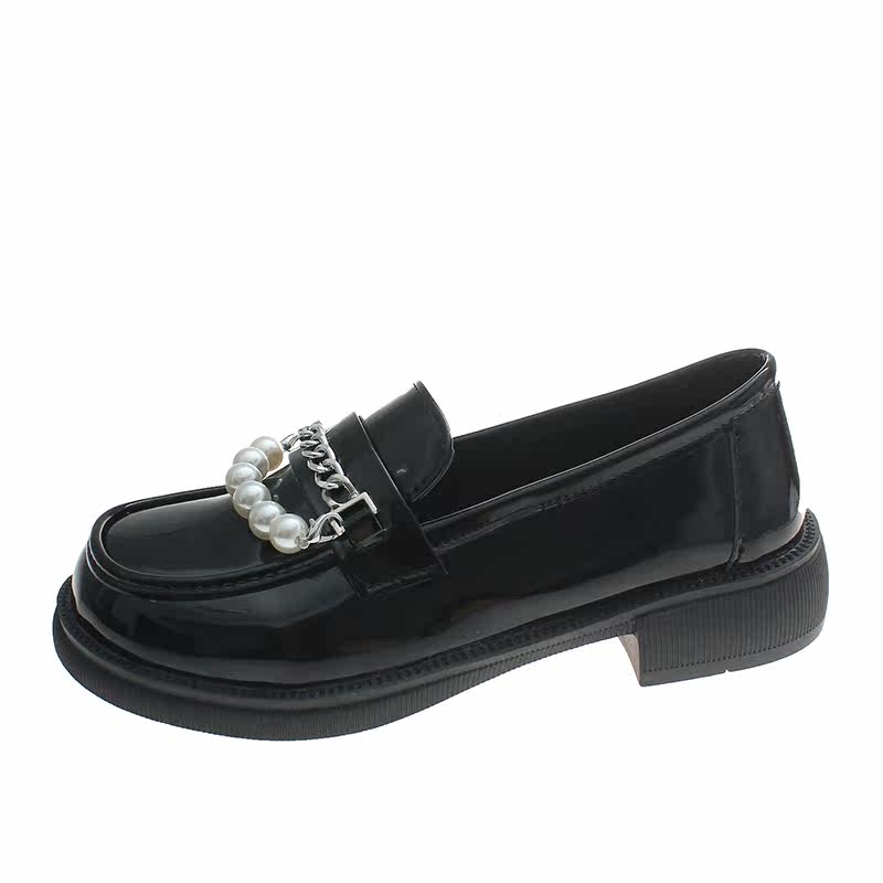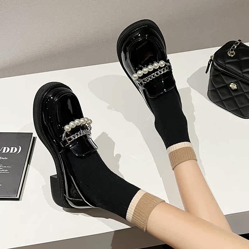 Small leather shoes Feminists Inn Wind 2022 new spring fall rough heel heel One foot pedal black Lefoo Single shoe woman shoes
