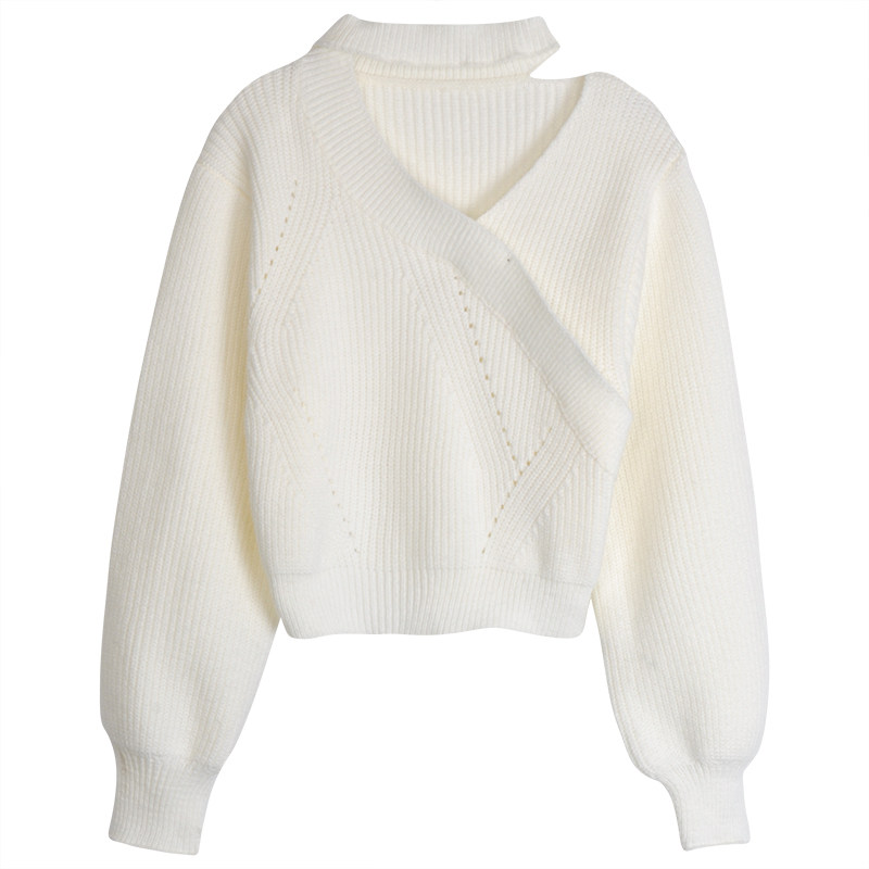 Day Ensemble White Undershirt Woman 2022 Spring Autumn New Design Sensation Hanging neck sweater with a small crowd to the blouses