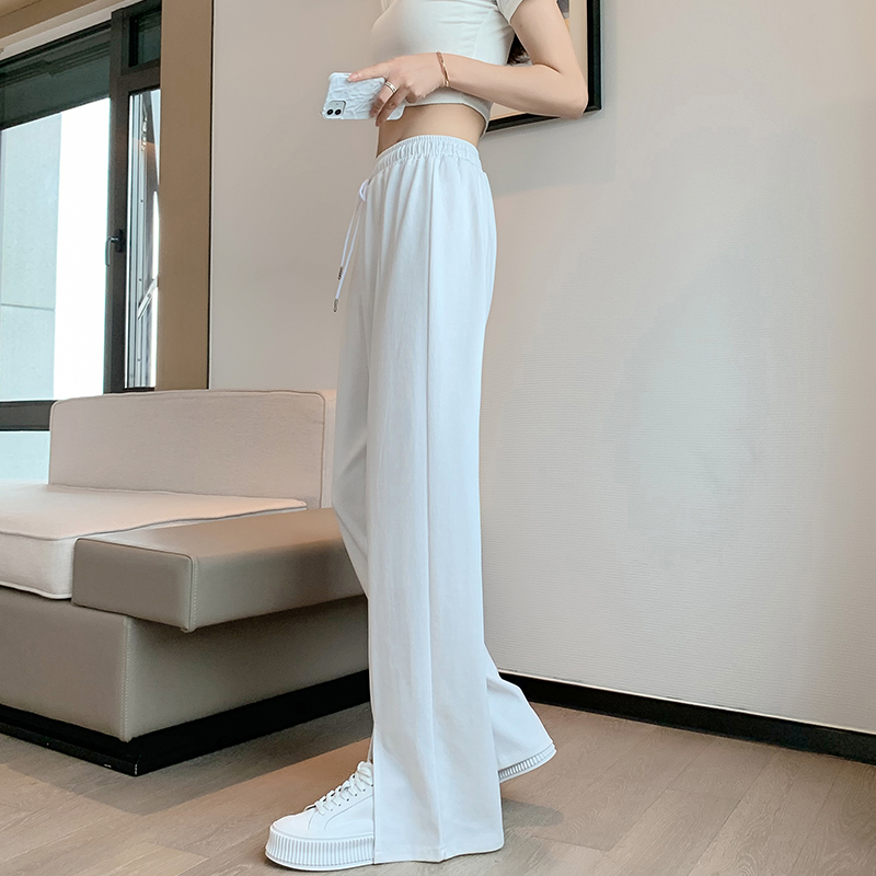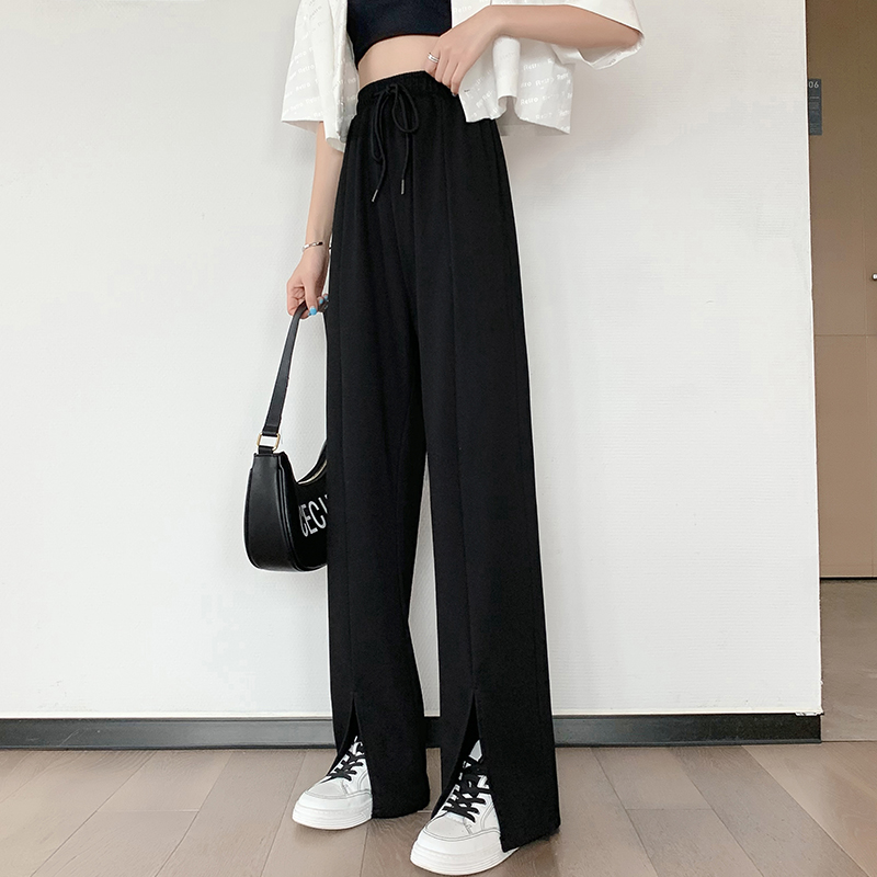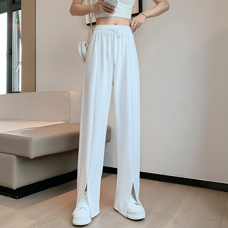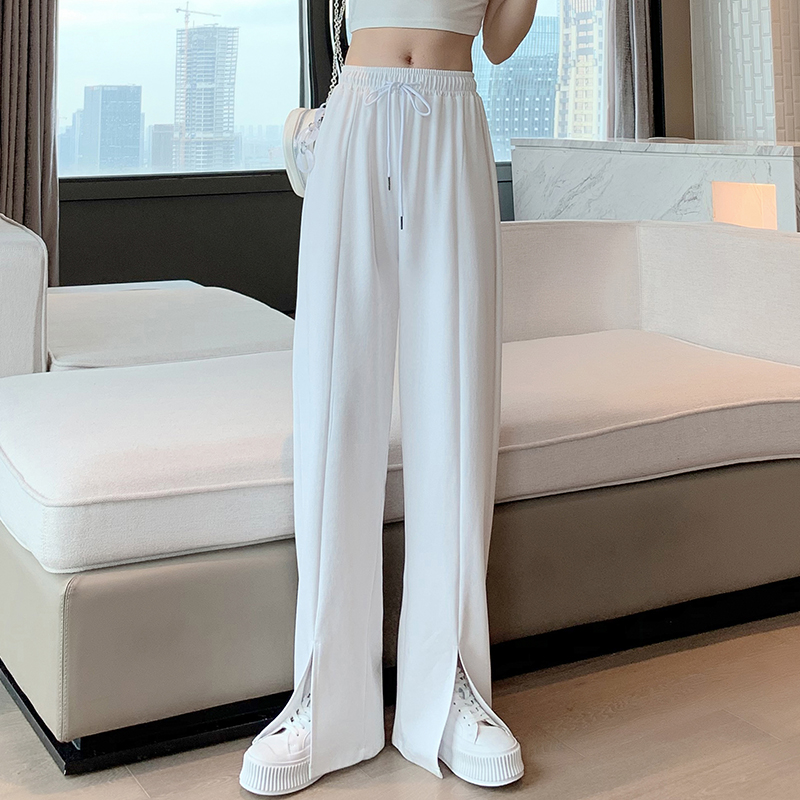 Slit wide-leg pants women's thin section fat mm large size drape casual pants look thin loose ice silk knitted floor mopping pants