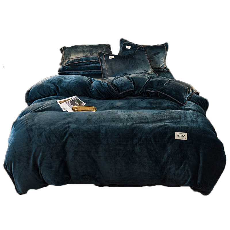 Cream four-piece thickened winter coral velvet linen double-sided plus-sided flannel bed three-piece set