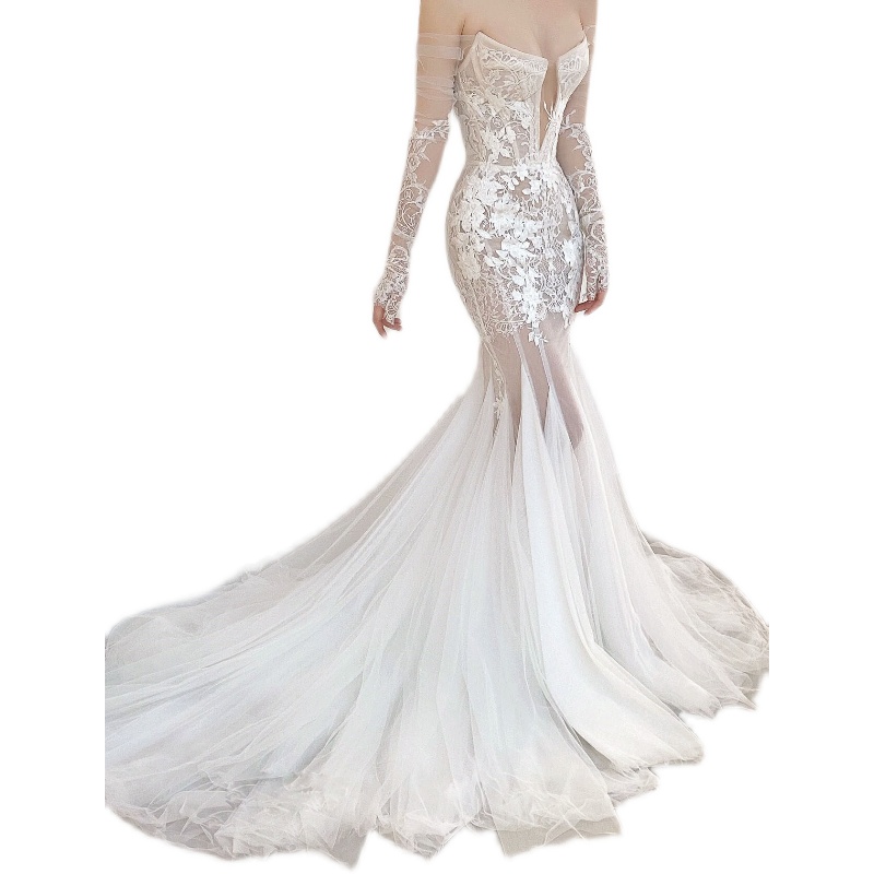 Light wedding dress 2023 spring and summer new forest style travel photography outdoor slim mermaid skirt high-end lace super fairy dream