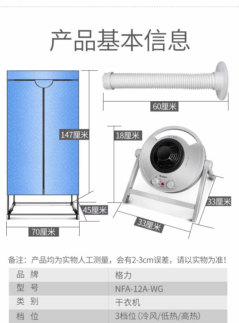 Gli Dryer Home Small Dryer Warm Air Blower Student Dorm Room Baby Bilayer Fold GN-10X60